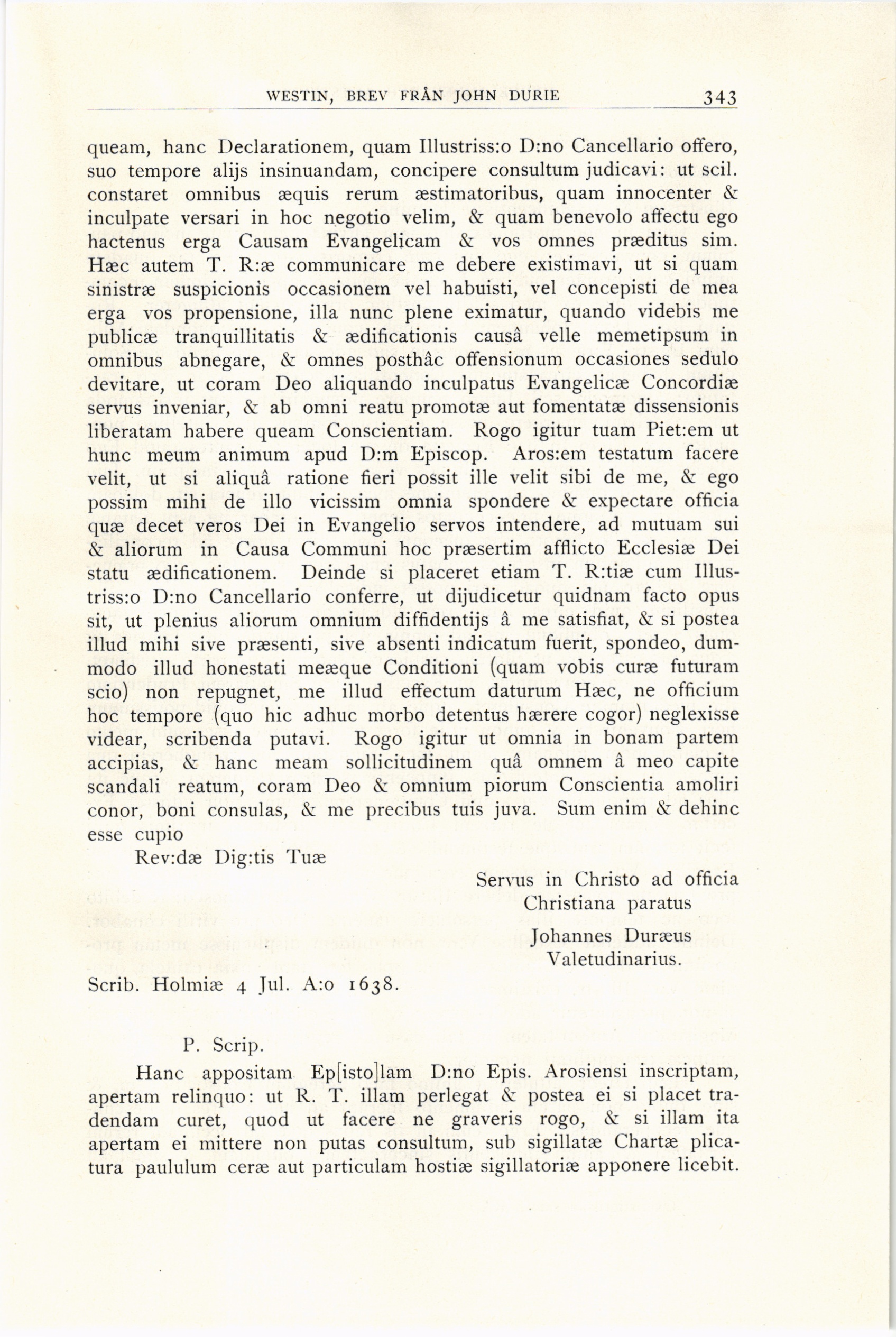 Full resolution (JPEG) - On this page / på denna sida - Meddelanden och aktstycken - Brev från John Durie åren 1636—1638 utg. av Gunnar Westin
