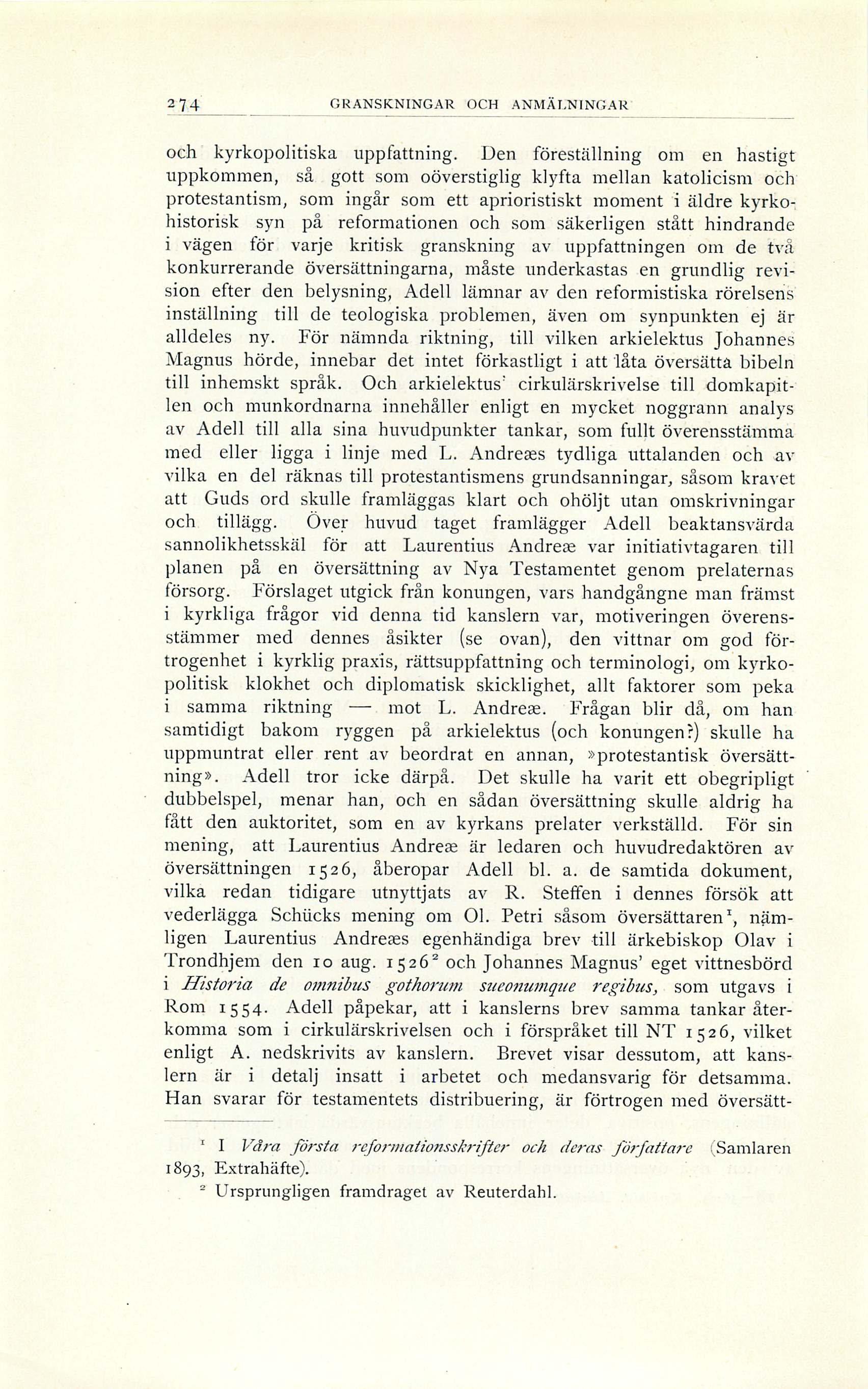 översättningen 1526, åberopar Adell bl. a. de samtida dokument,