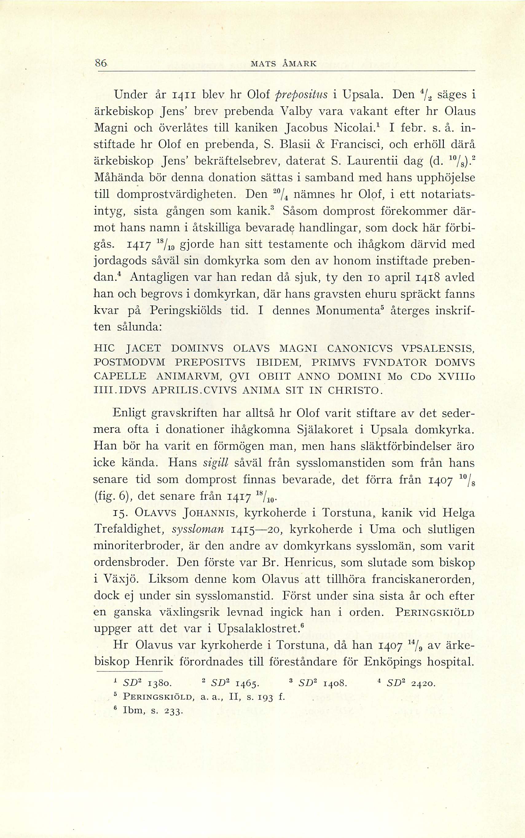 Full resolution (JPEG) - On this page / på denna sida - I. Undersökningar - Mats Åmark, Upsala domkyrkas medeltida sysslomän. — Till Domkyrkans personhistoria