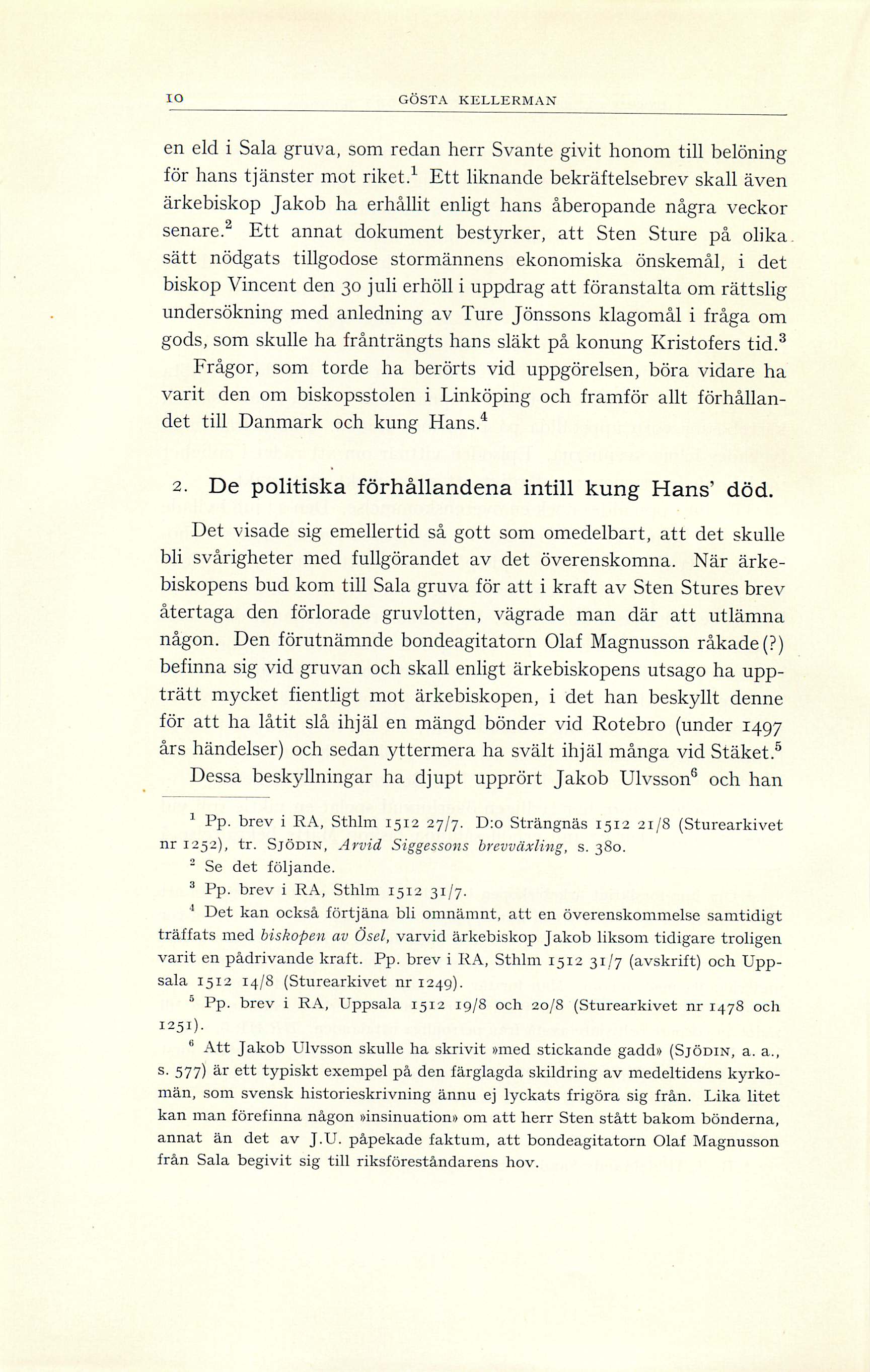 6 Att Jakob Ulvsson skulle ha skrivit »med stickande gadd» (Sjödin, a. a.,