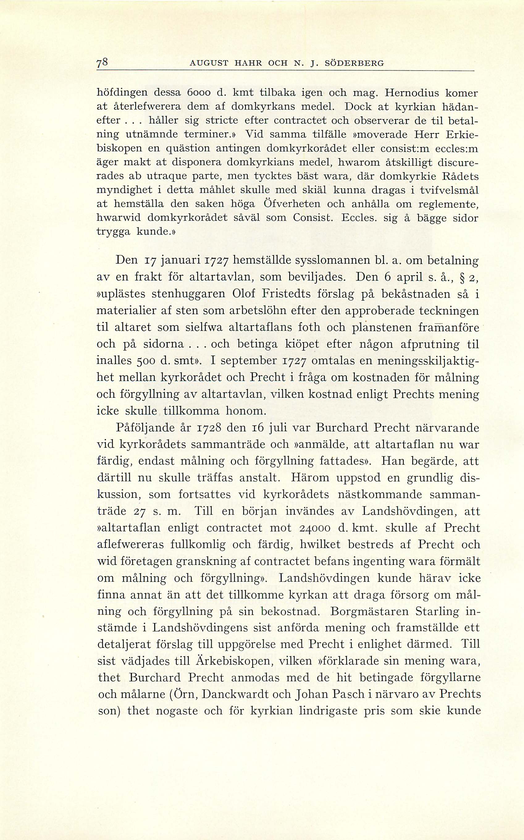 och förgyllning av altartavlan, vilken kostnad enligt Prechts mening