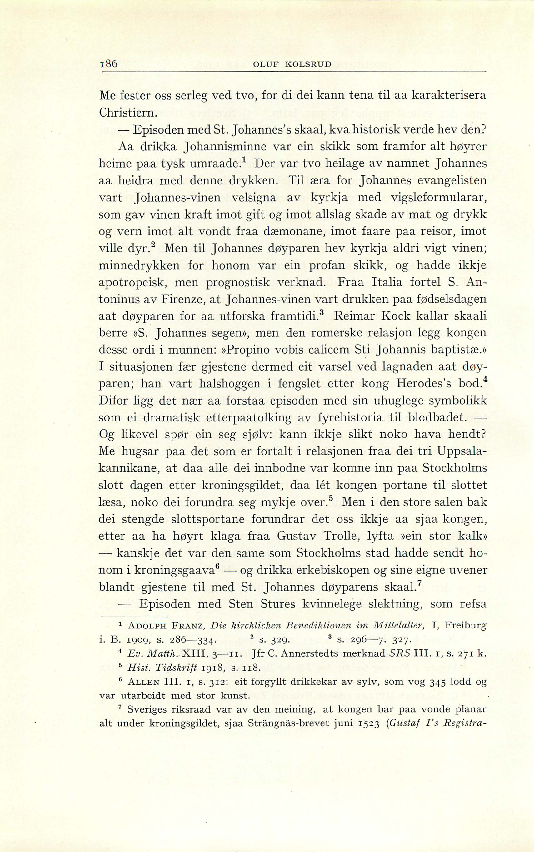 berre »S. Johannes segen», men den romerske relasjon legg kongen