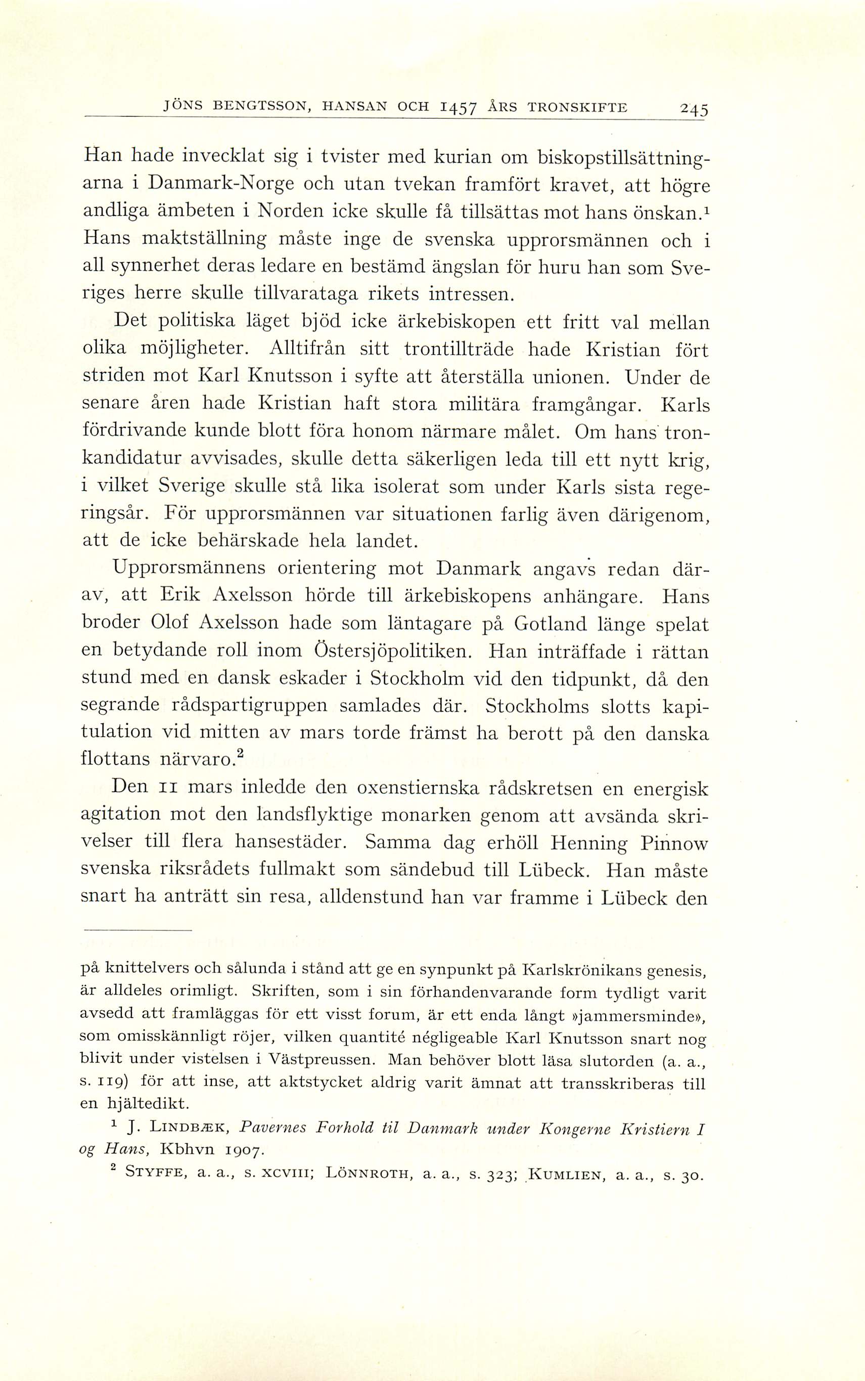 2 Styffe, a. a., s. xcviu; Lönnroth, a. a., s. 323; Kumlien, a. a., s. 30.