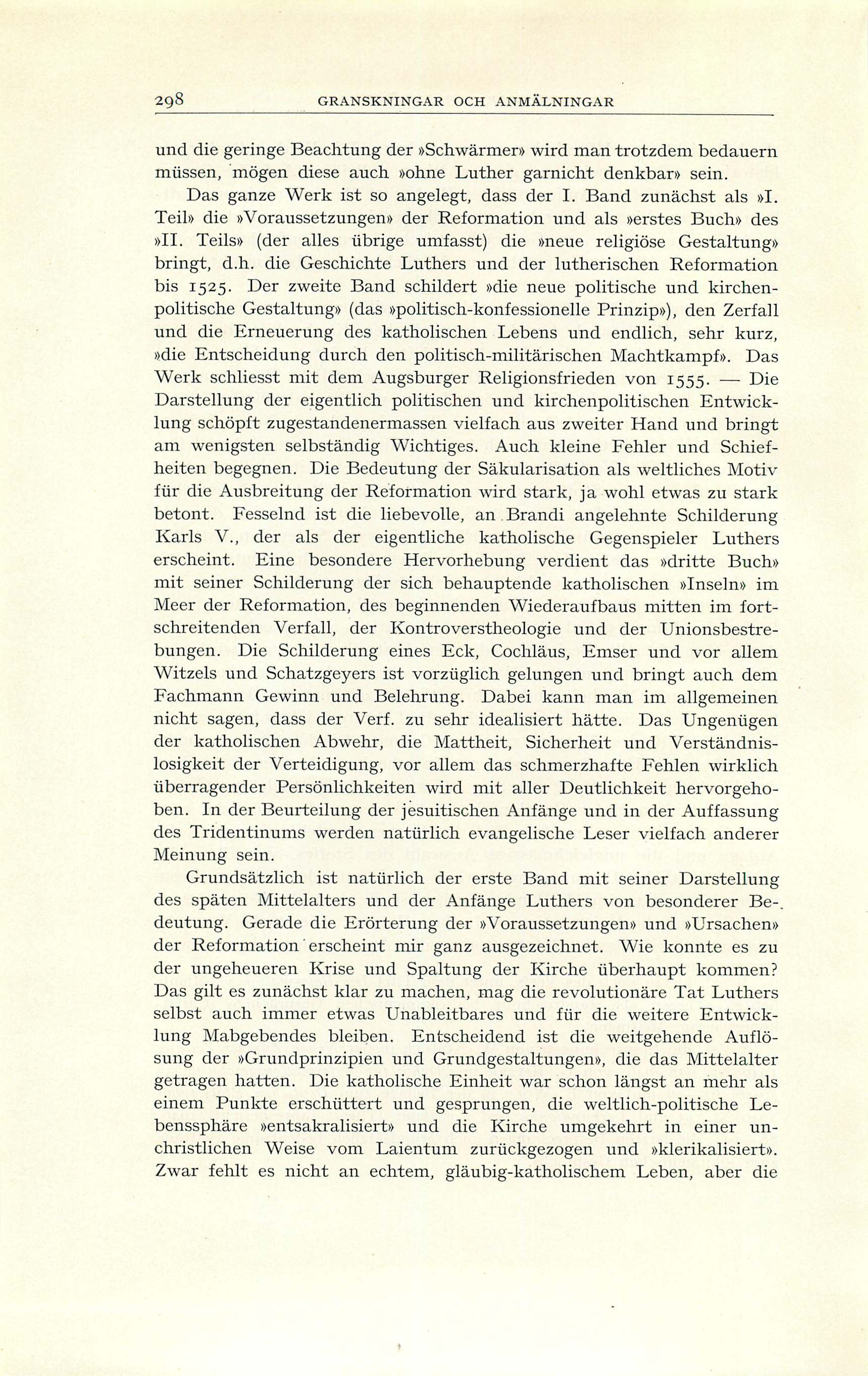 Full resolution (JPEG) - On this page / på denna sida - II. Granskningar och anmälningar - Joseph Lortz, Die Reformation in Deutschland, I—II (Professor H. v. Campenhausen)