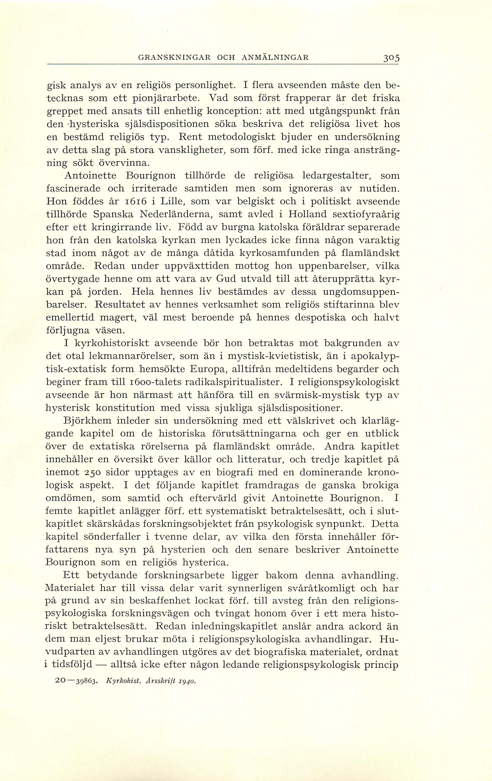 Full resolution (JPEG) - On this page / på denna sida - II. Granskningar och anmälningar - John Björkhem, Antoinette Bourignon. Till den svärmiska religiositetens historia och psykologi (Docent Helge Ljungberg)