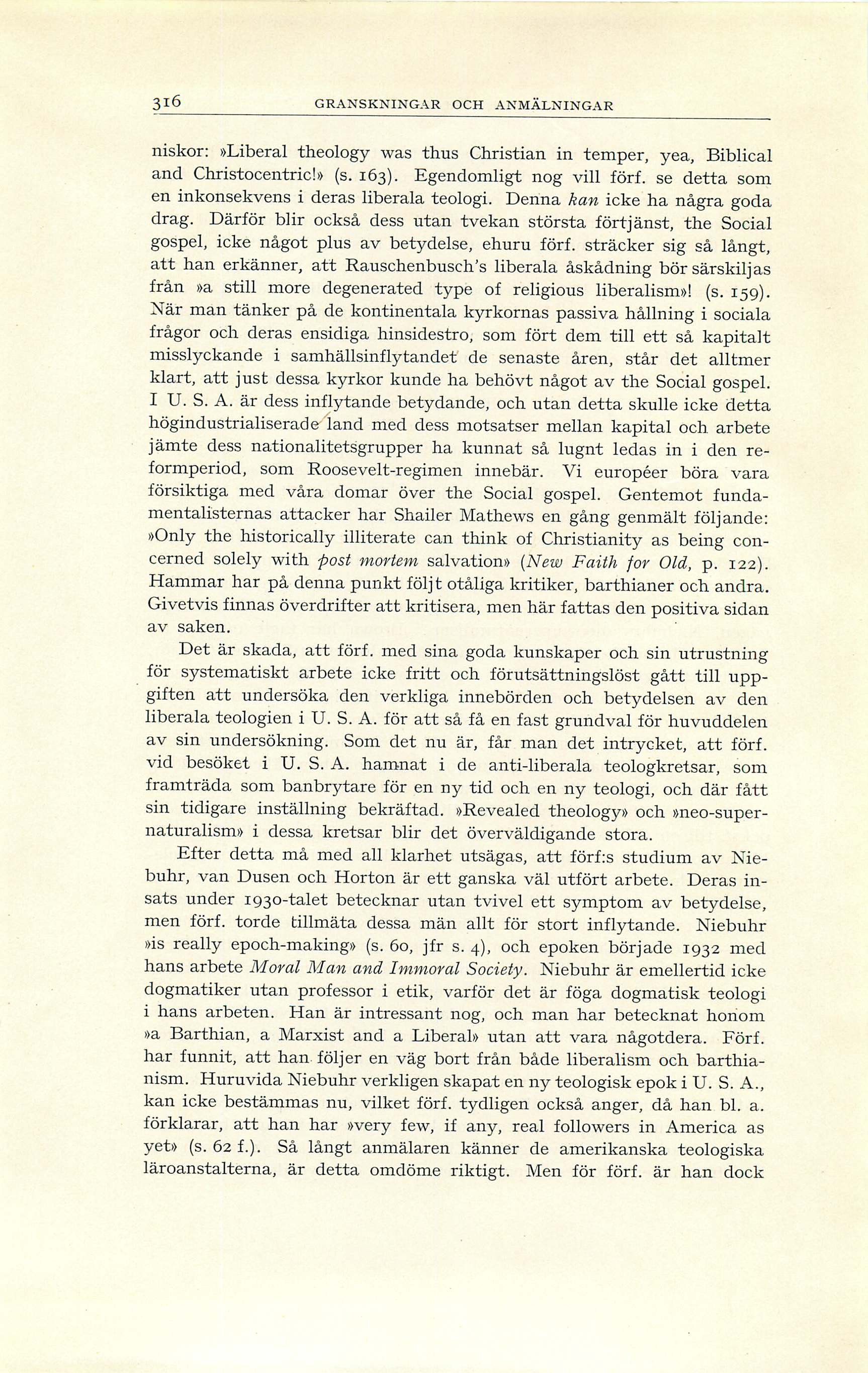 Full resolution (JPEG) - On this page / på denna sida - II. Granskningar och anmälningar - George Hammar, Christian Realism in Contemporary American Theology (Utgivaren)