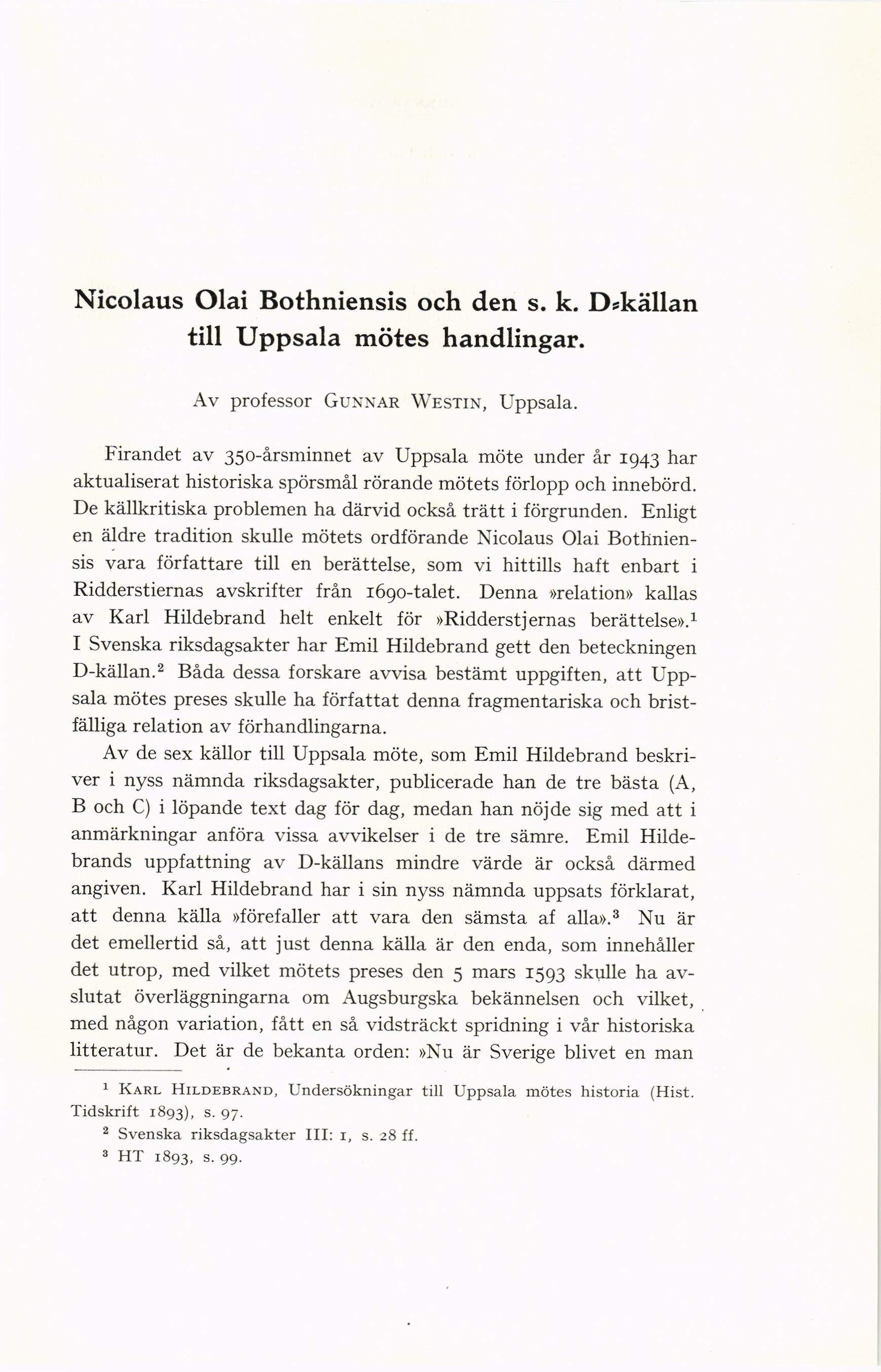 1 Karl Hildebrand, Undersökningar till Uppsala mötes historia (Hist.