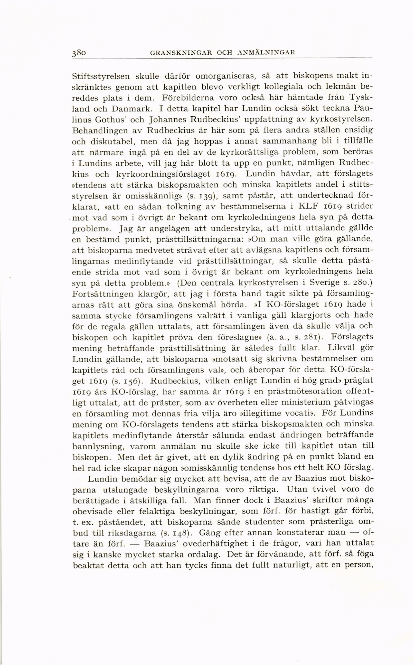 Full resolution (JPEG) - On this page / på denna sida - III. Granskningar och anmälningar - Hans Lundin, Joannes Baazius’ kyrkliga reformprogram (Docent Hans Cnattingius)