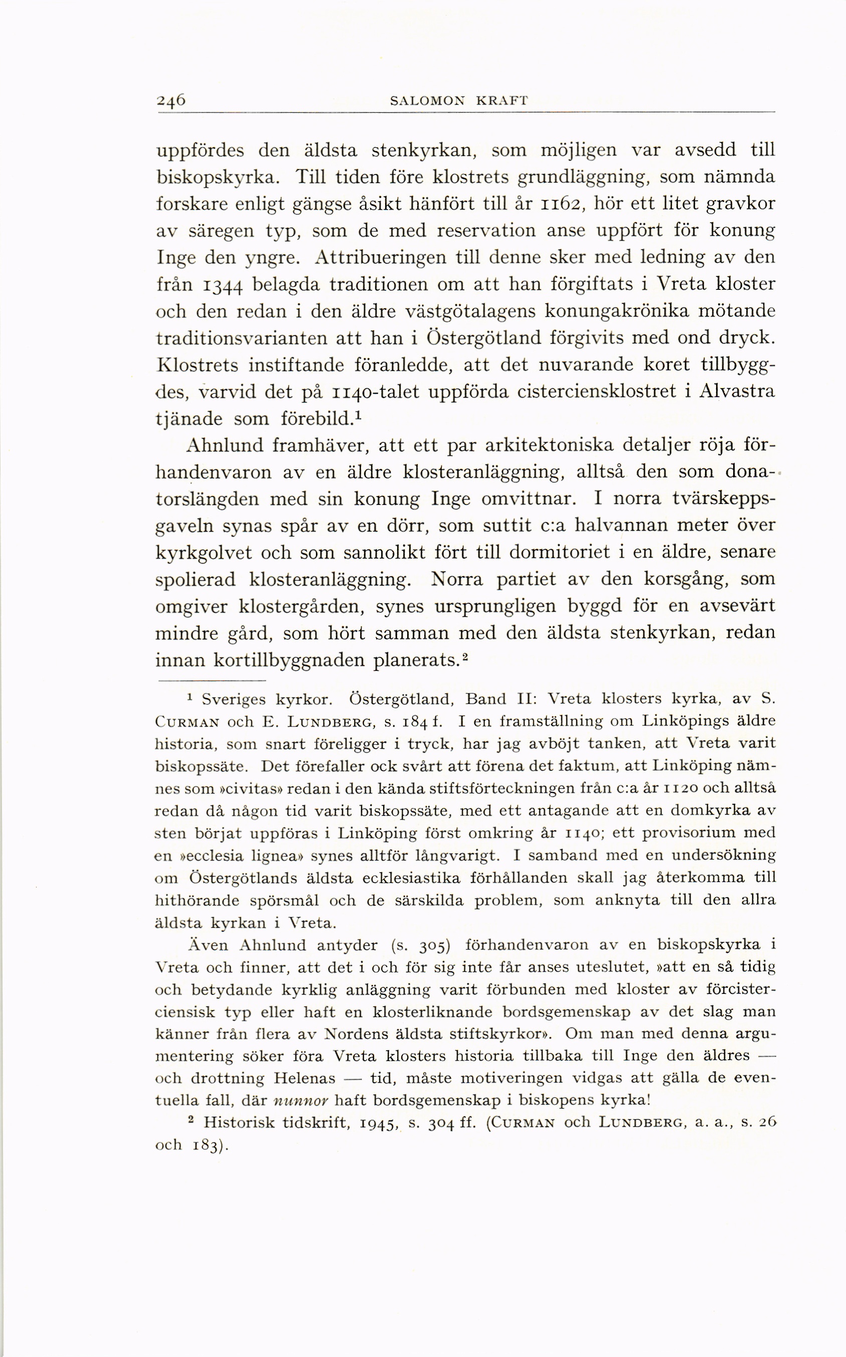 historia, som snart föreligger i tryck, har jag avböjt tanken, att Vreta varit