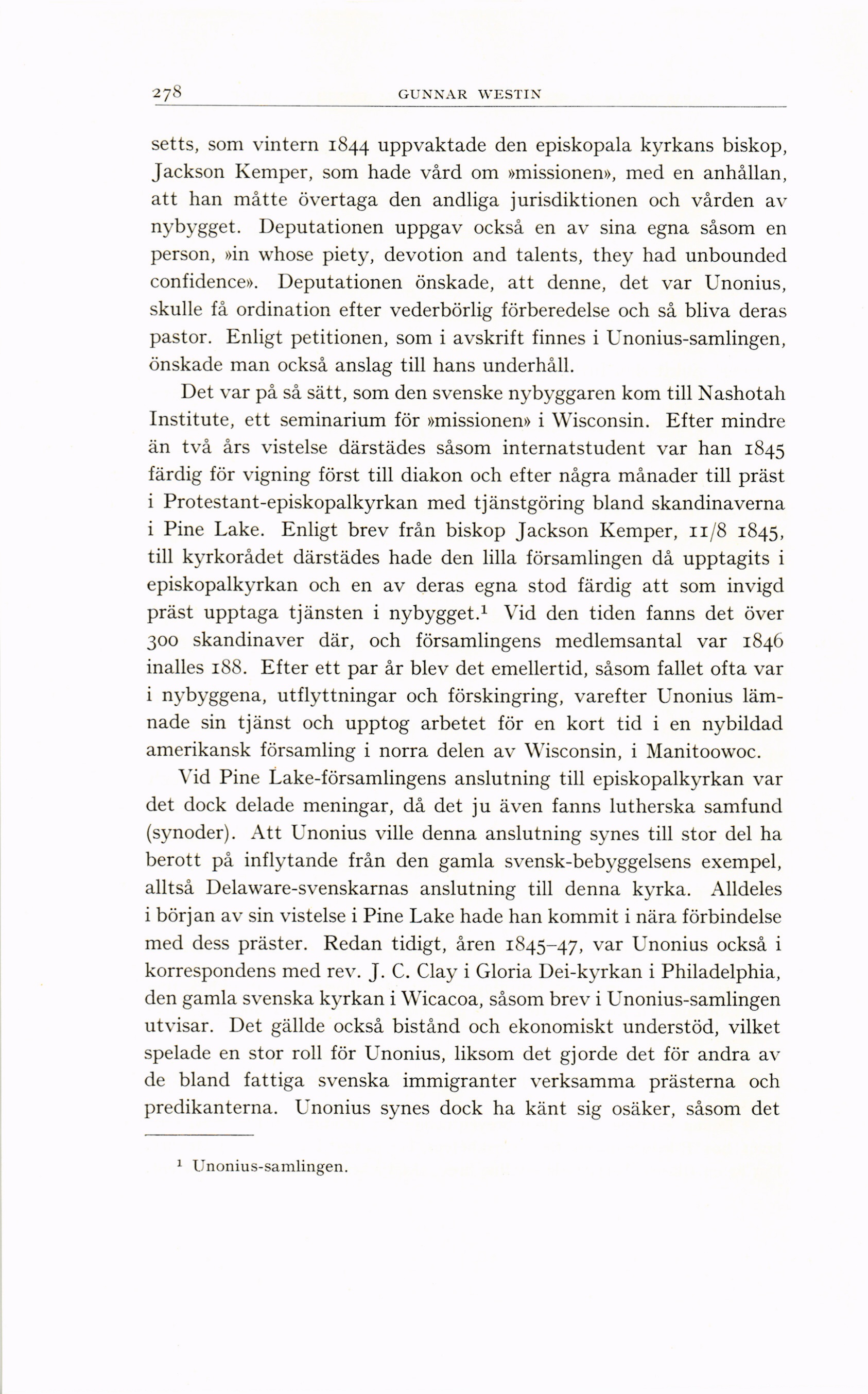 (synoder). Att Unonius ville denna anslutning synes till stor del ha
