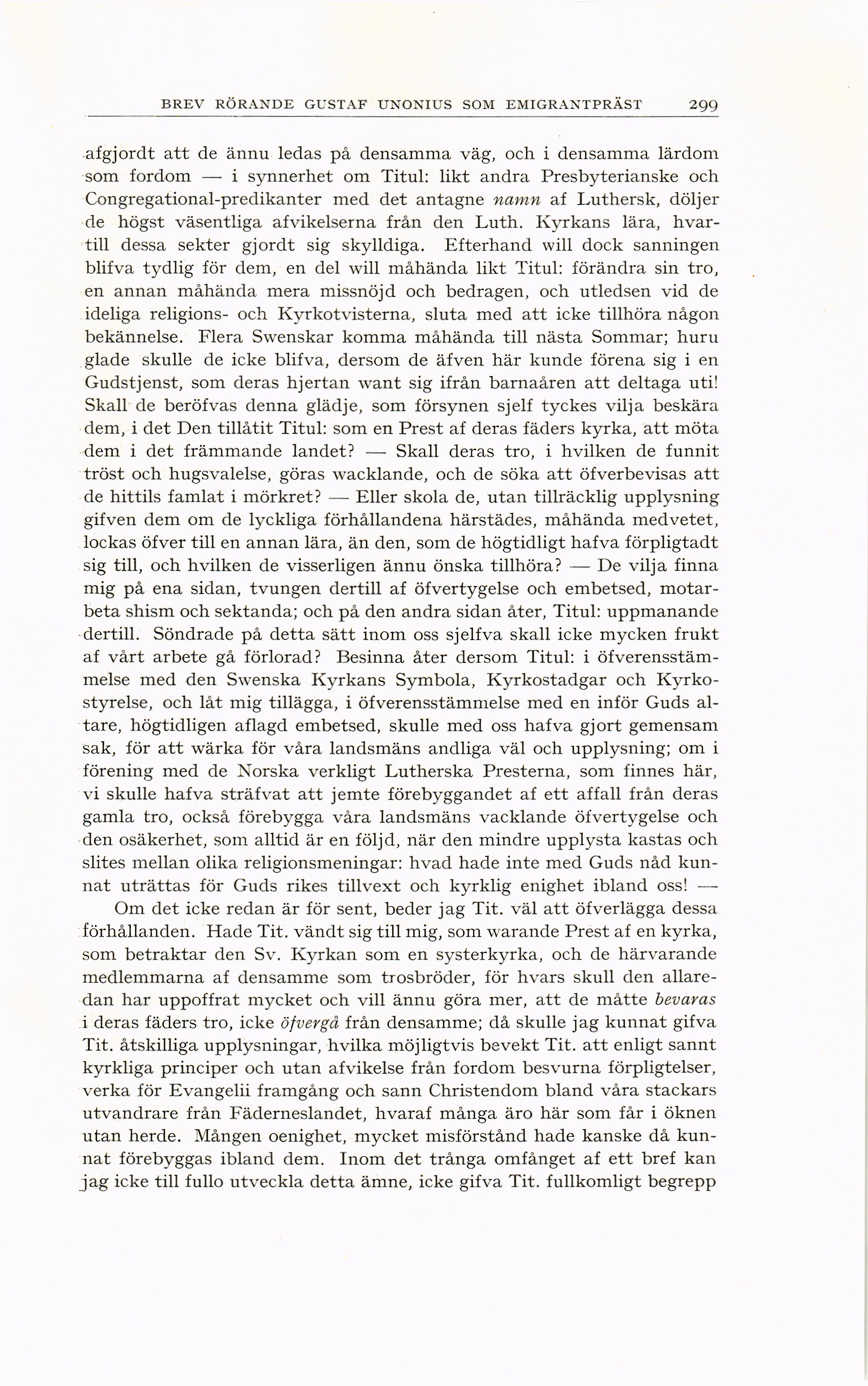 Full resolution (JPEG) - On this page / på denna sida - II. Meddelanden och aktstycken - Gunnar Westin, Brev rörande Gustaf Unonius som emigrantpräst