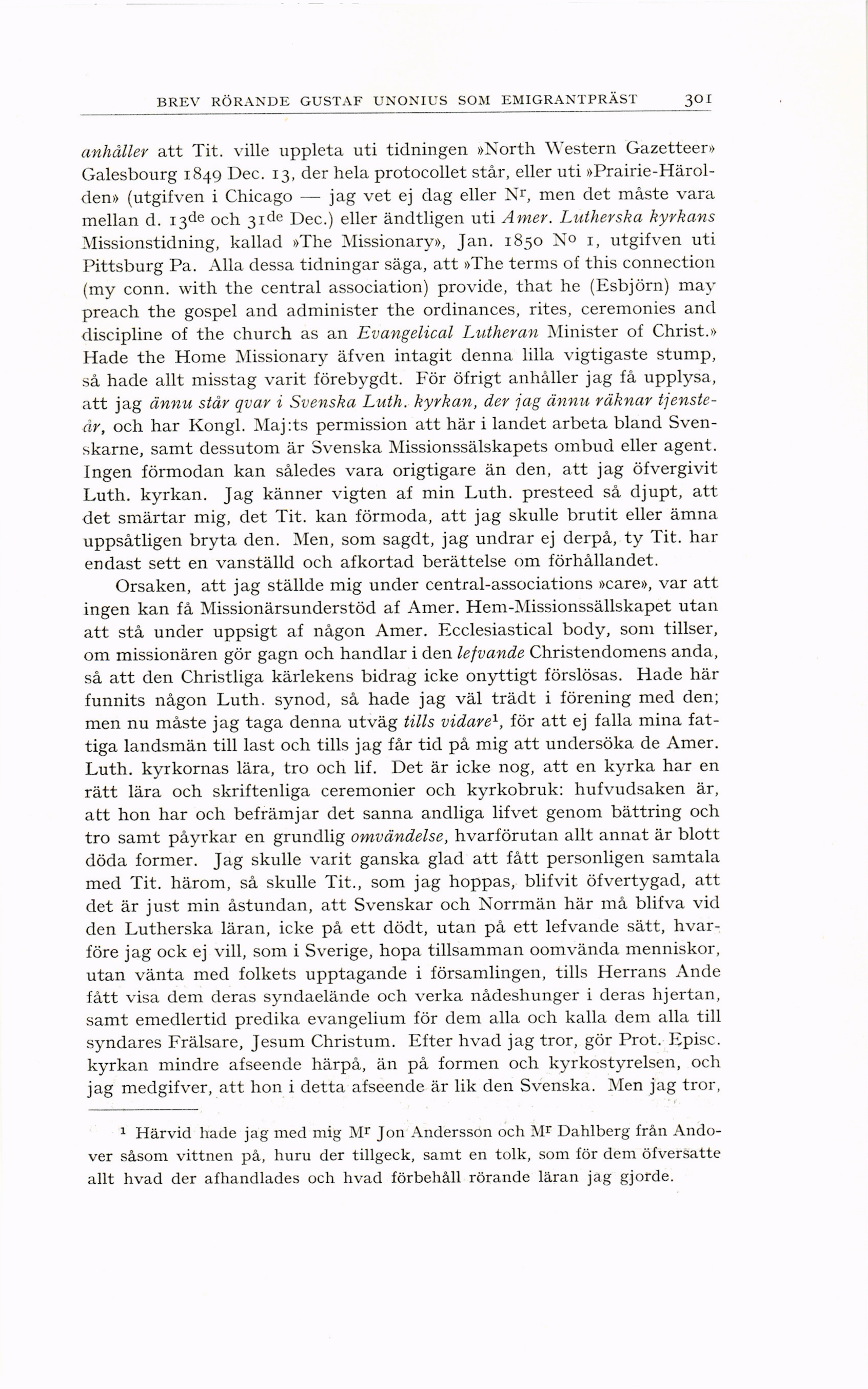 Full resolution (JPEG) - On this page / på denna sida - II. Meddelanden och aktstycken - Gunnar Westin, Brev rörande Gustaf Unonius som emigrantpräst