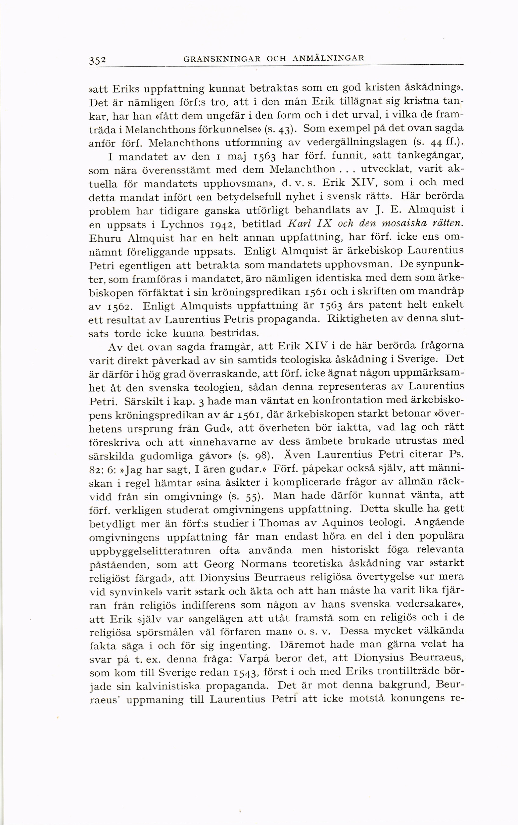 Full resolution (JPEG) - On this page / på denna sida - III. Granskningar och anmälningar - Gunnar Annell, Erik XIV:s etiska föreställningar och deras inflytande på hans politik (Prof. Sven Kjöllerström)
