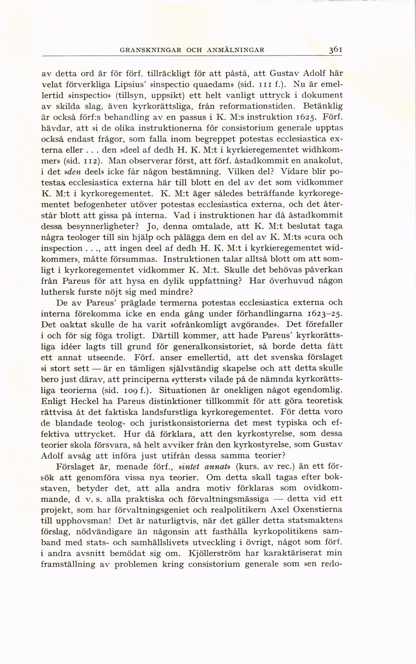 Full resolution (JPEG) - On this page / på denna sida - III. Granskningar och anmälningar - Sven Kjöllerström, Kyrkolagsproblemet i Sverige 1571—1682 (Doc. Hans Cnattingius)