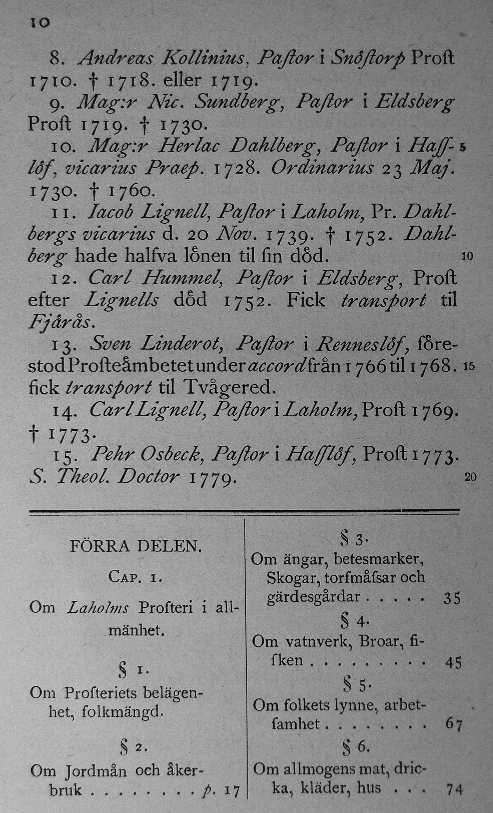 15. Pehr Osbeck, Pastor i Hasslöf, Prost 1773.