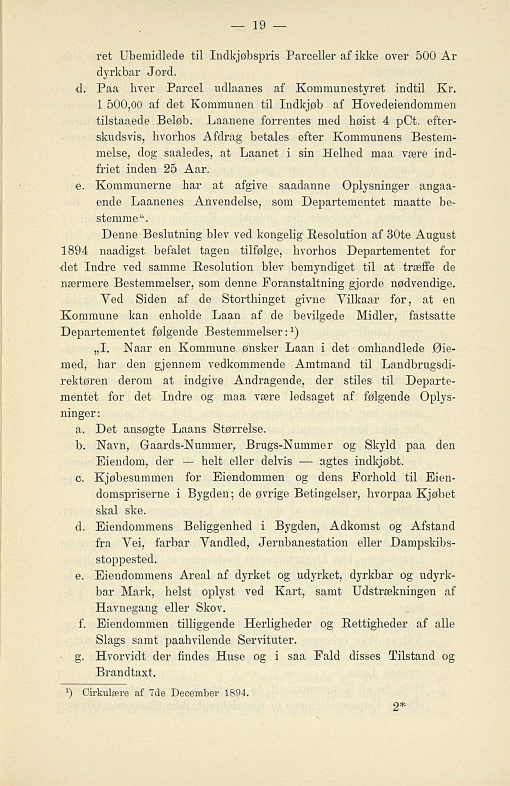 1894 naadigst befalet tagen tilfølge, hvorhos Departementet for