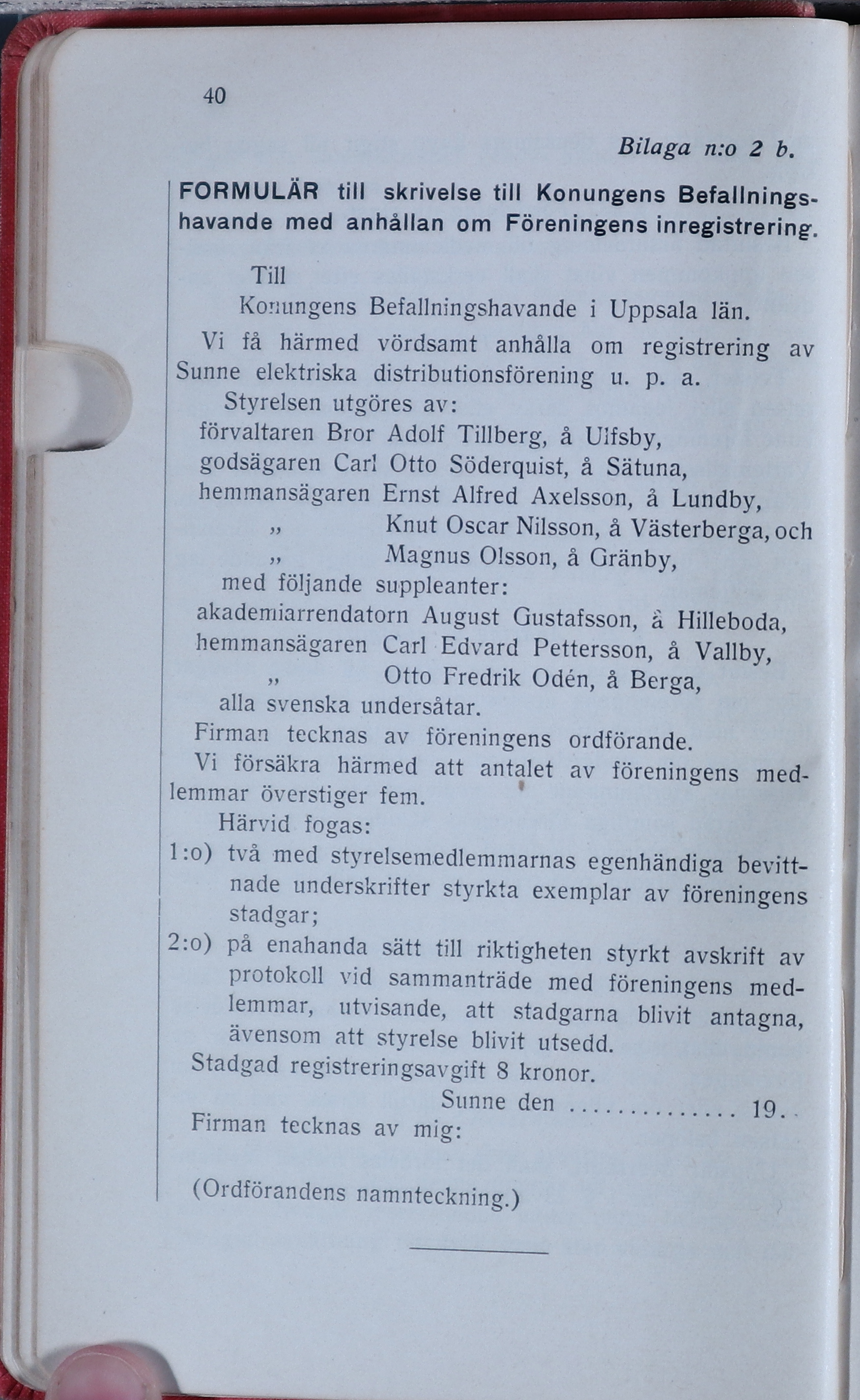 Befallnings-havande med anhållan om Föreningens inregistrering.