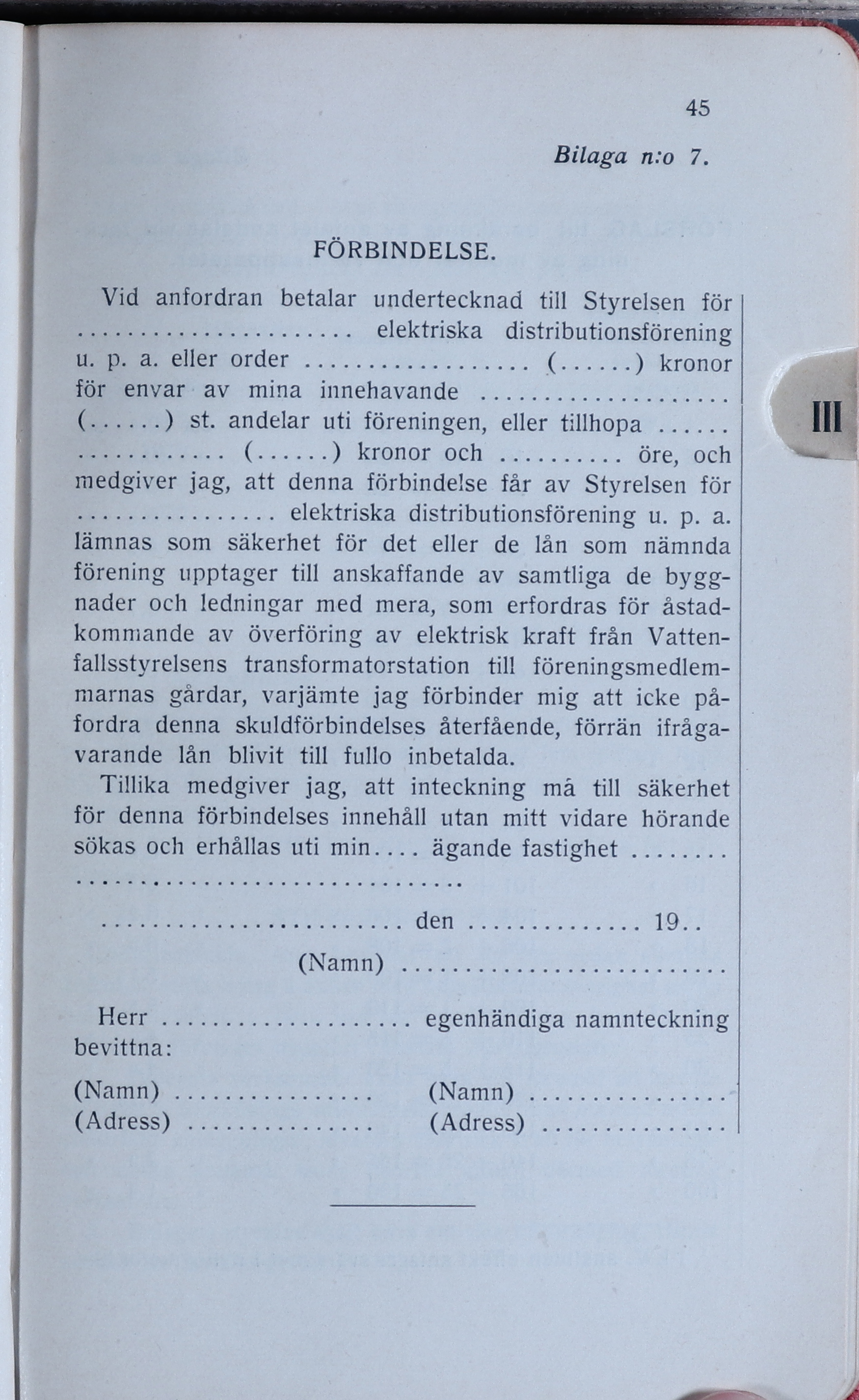 Full resolution (JPEG) - On this page / på denna sida - II. Landsbygdsdistributionens organisation - B. Den administrativa organisationen - 1. Lokala distributionsföretag - b) Stadgar och formulär - III. Andelsförening