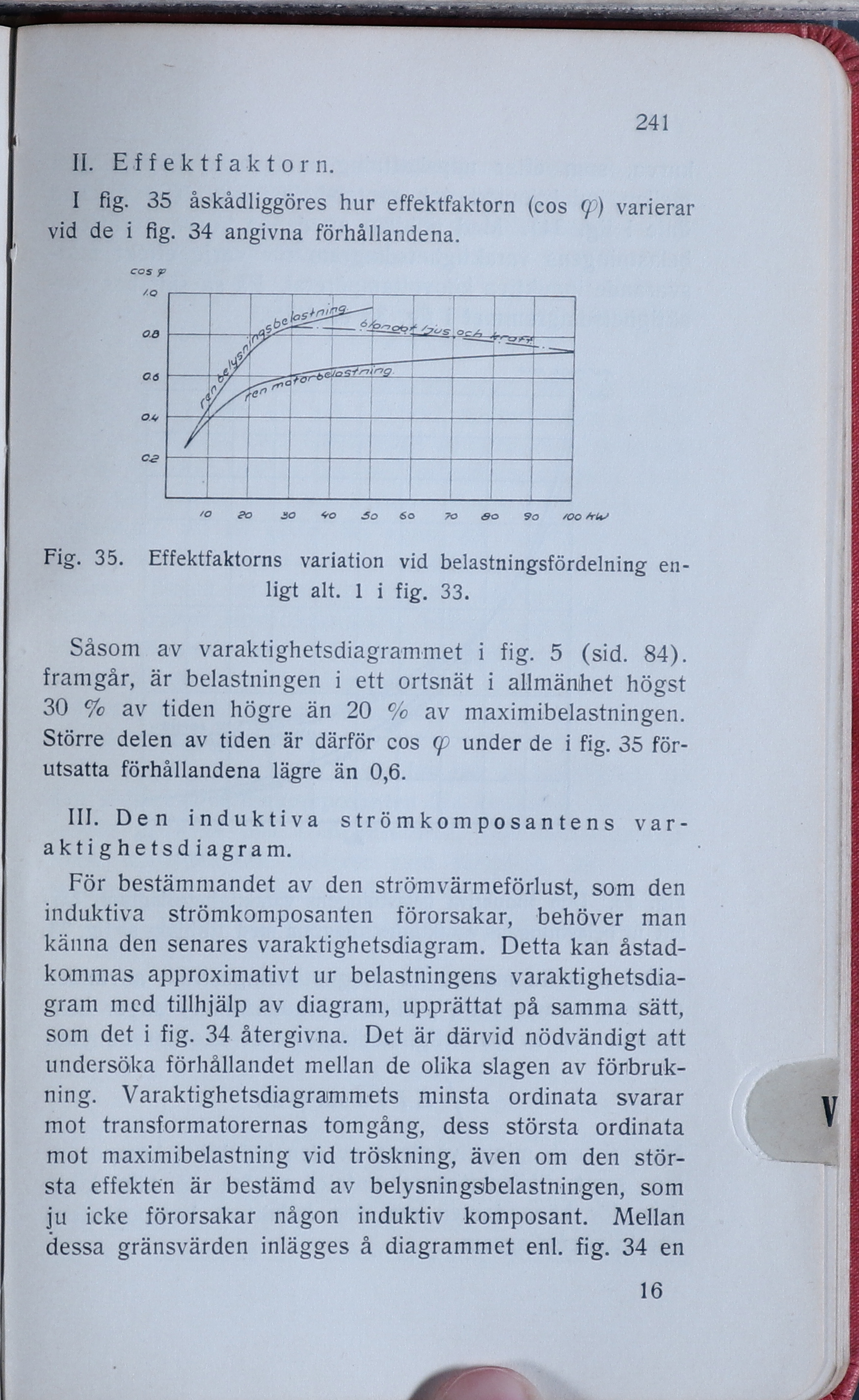 Full resolution (JPEG) - On this page / på denna sida - IV. Ortsnät - E. Ortsnäts förvaltning och drift - 3. Den tekniska driften - d) Fasförskjutningen - II. Effektfaktorn - III. Den induktiva belastningens varaktighetsdiagram