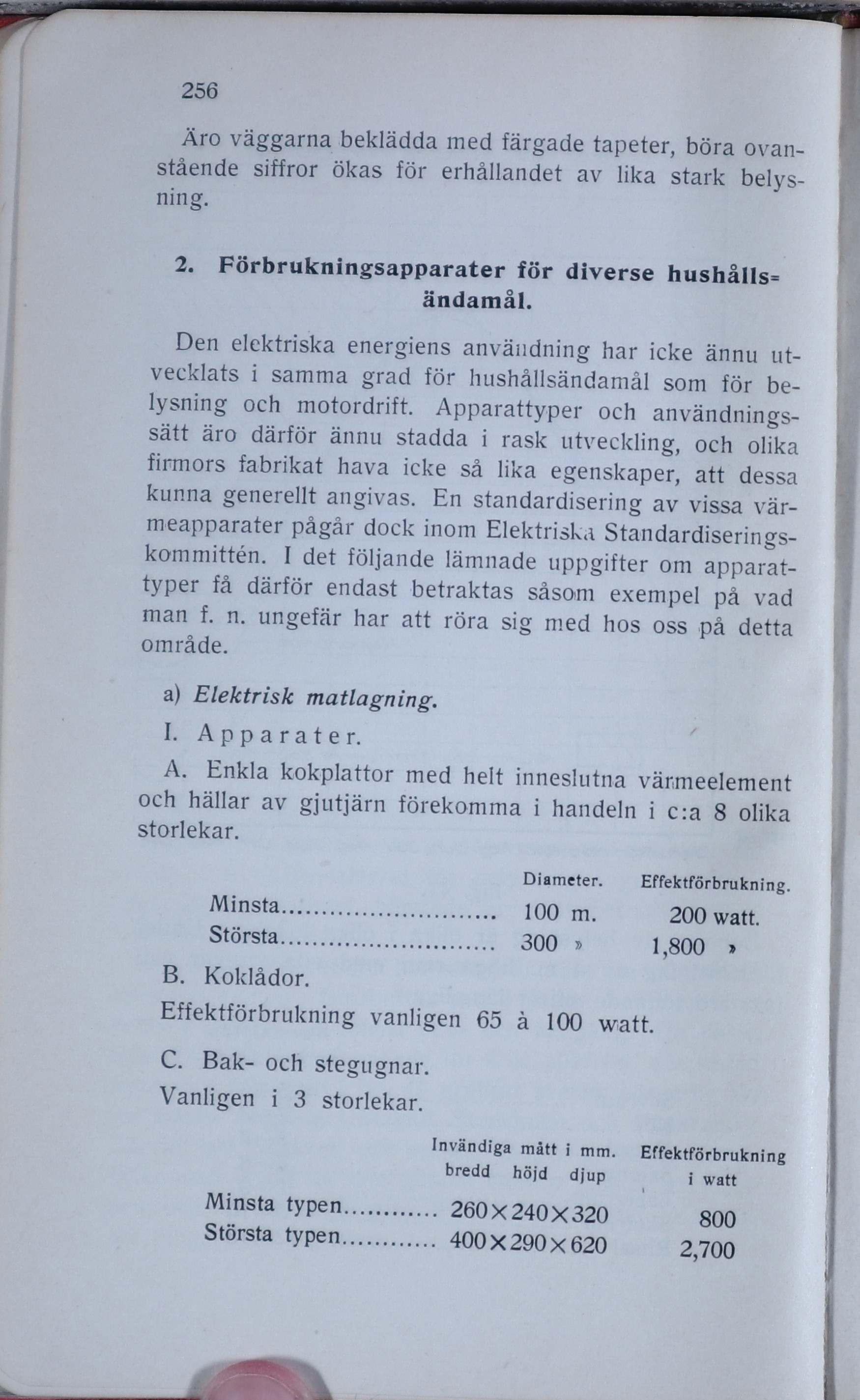 Full resolution (JPEG) - On this page / på denna sida - V. Gårdsanläggningar - A. Förbrukningsapparater och deras egenskaper, effekt- och energibehov - 1. Belysning - b) Effekt- och energibehov för belysning - 2. Förbrukningsapparater för diverse hushållsändamål - a) Elektrisk matlagning - I. Apparater