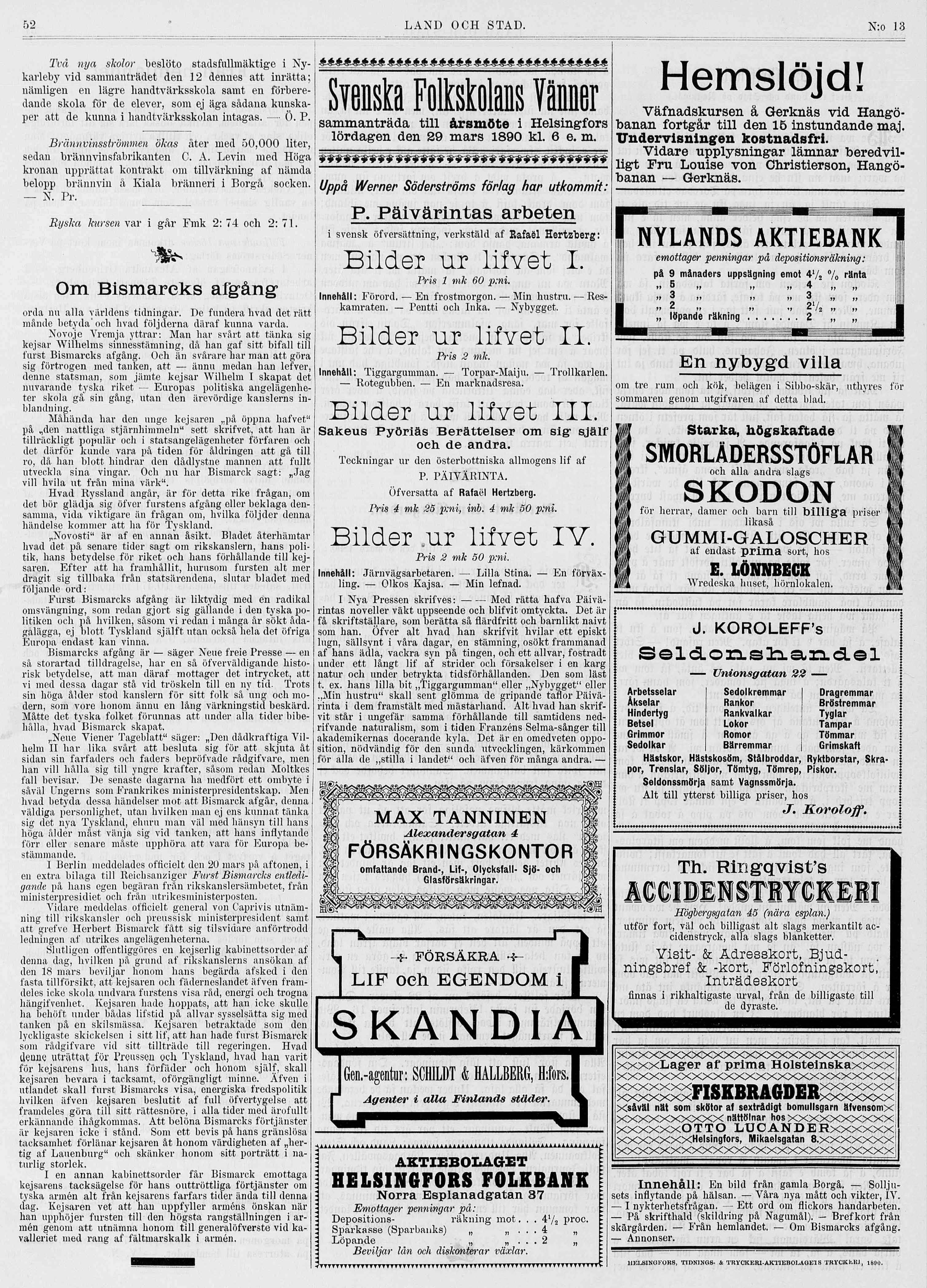 skärgården. — Från hemlandet. — Om Bismarcks afgång.