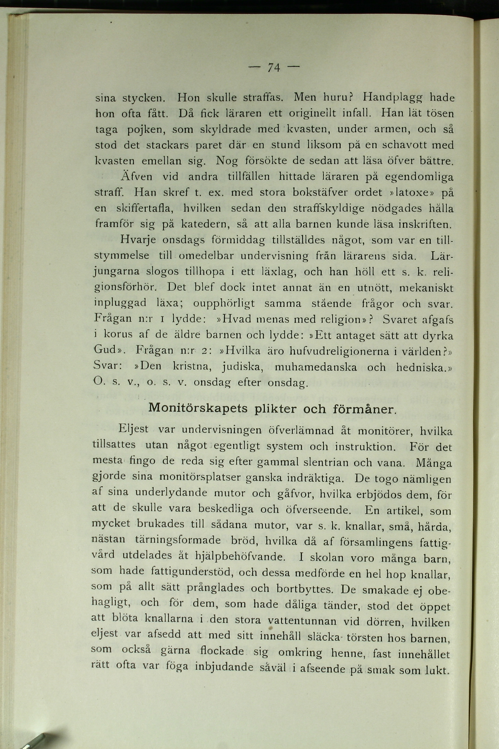 Eljest var undervisningen öfverlämnad åt monitörer, hvilka