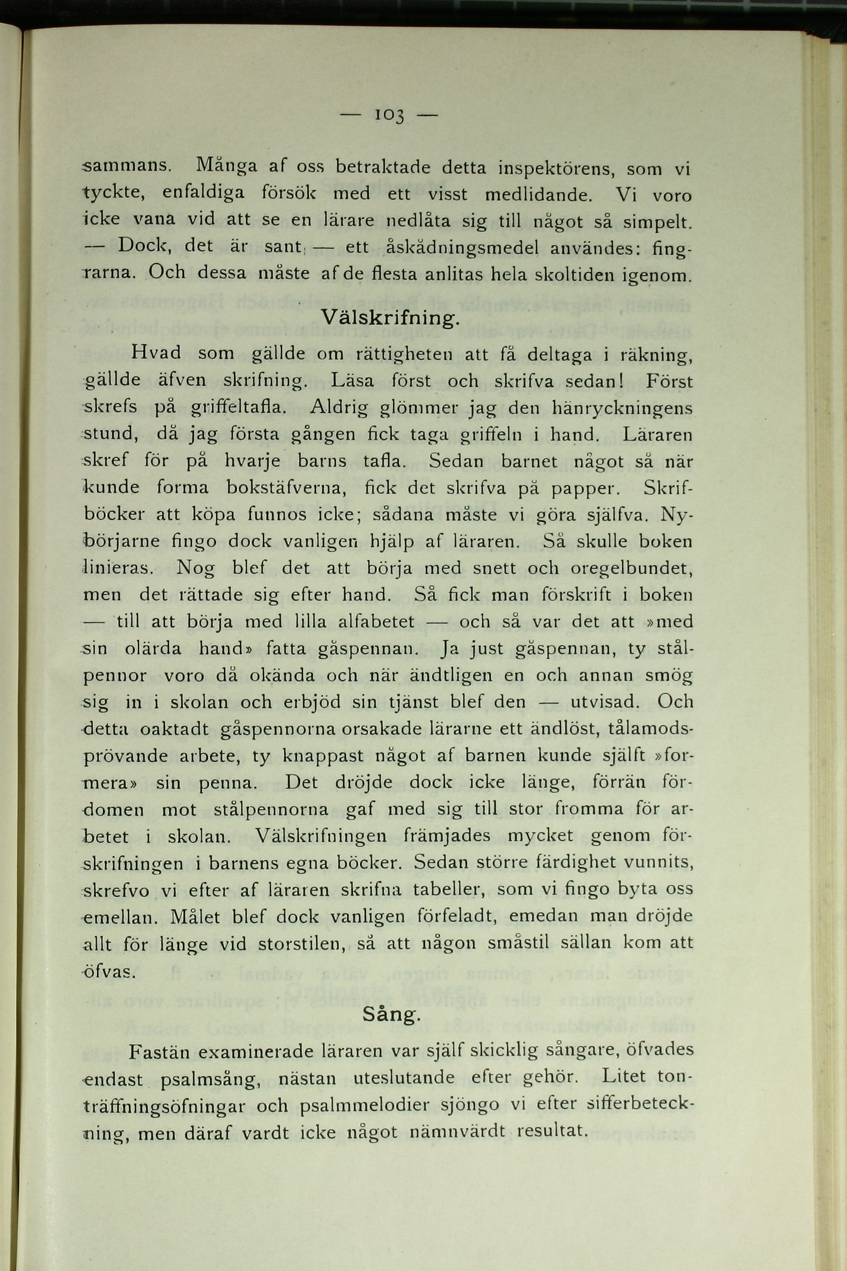Fastän examinerade läraren var själf skicklig sångare, öfvades