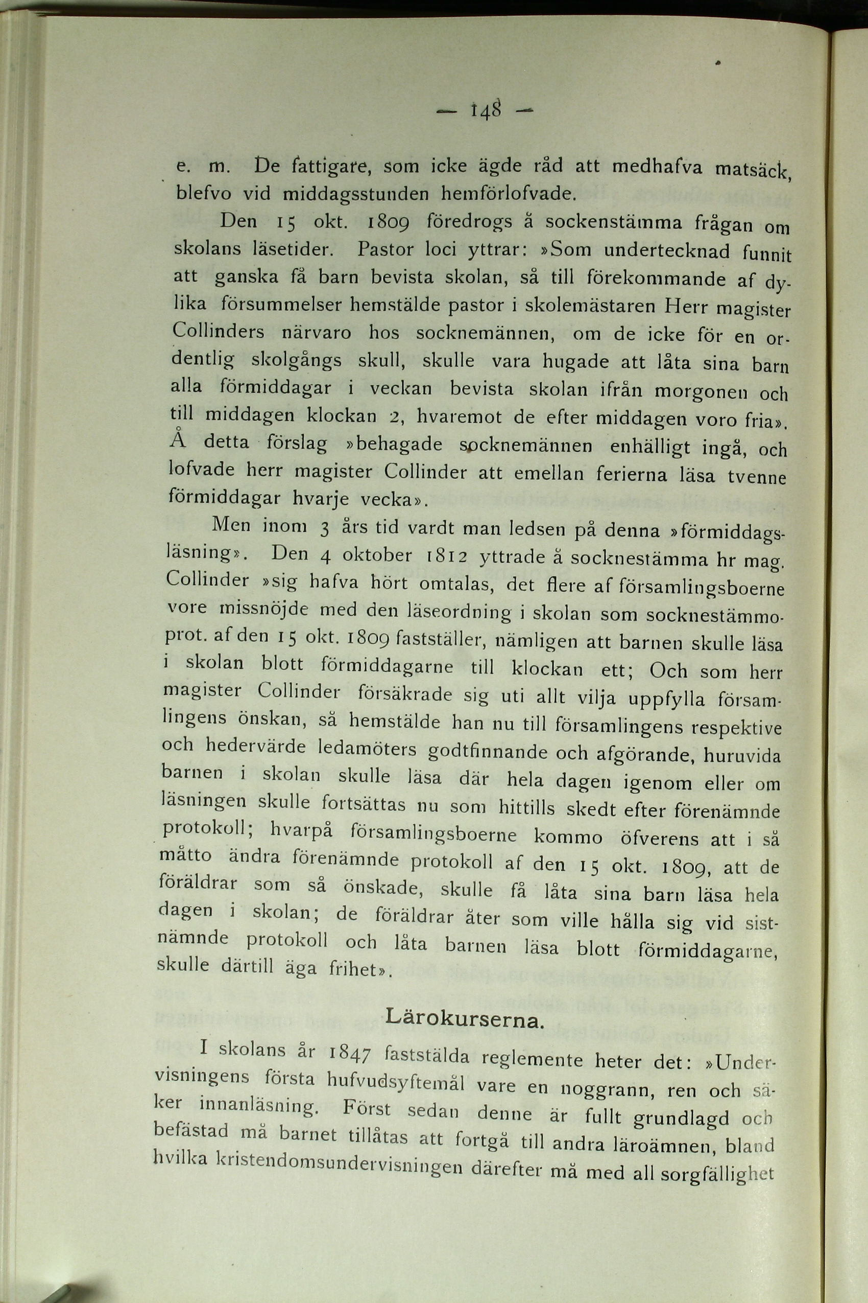 skolans läsetider. Pastor loci yttrar: »Som undertecknad funnit