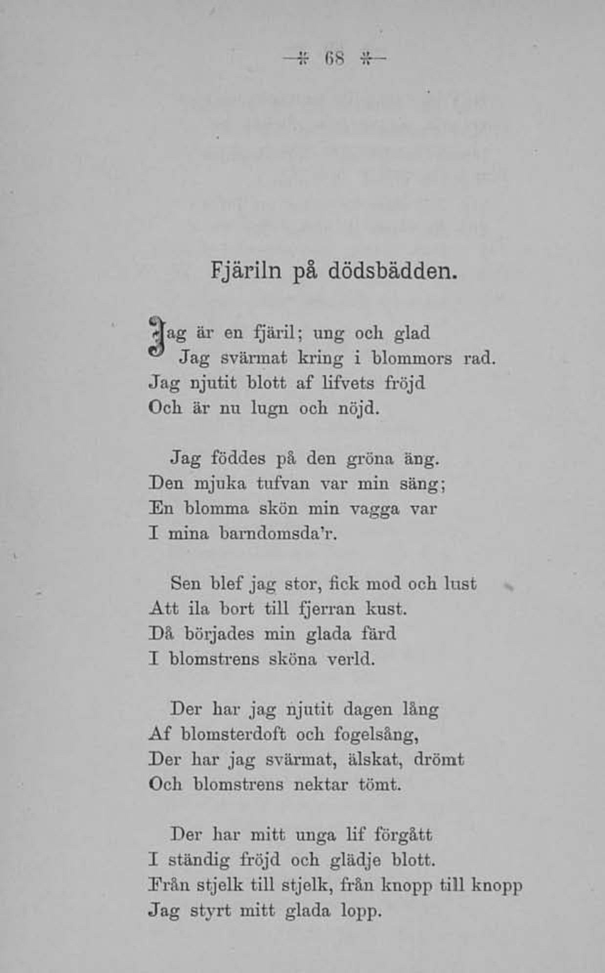 " Jag svärmat kring i blommors rad.