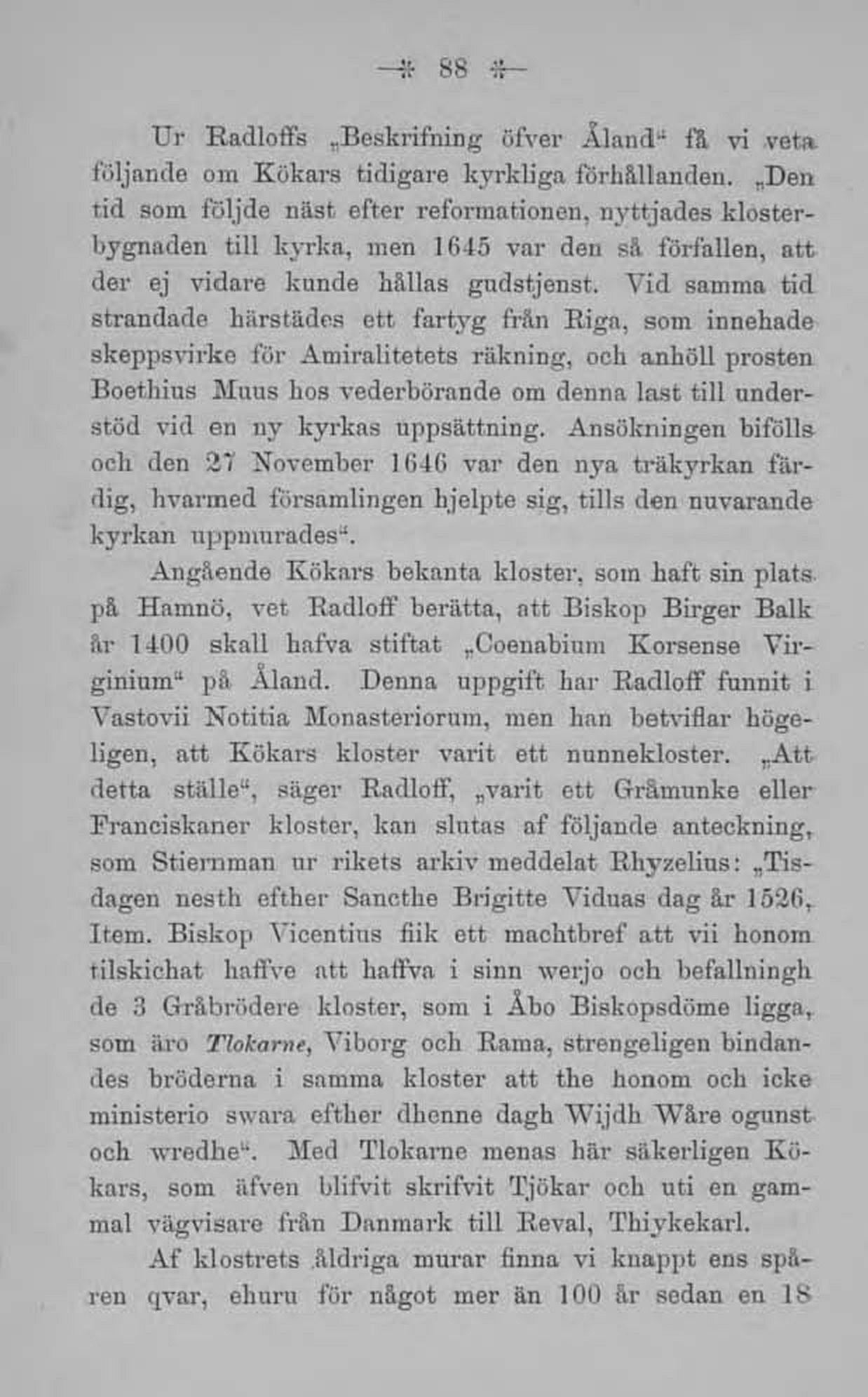 högeligen, att Kökars kloster varit ett nunnekloster. rAtt
