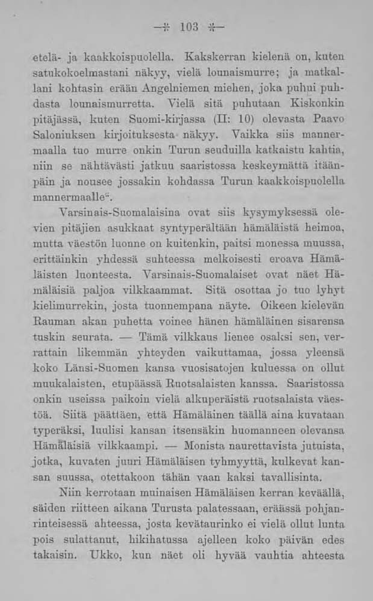 Hämäläisten luonteesta. Varsinais-Suomalaiset ovat näet