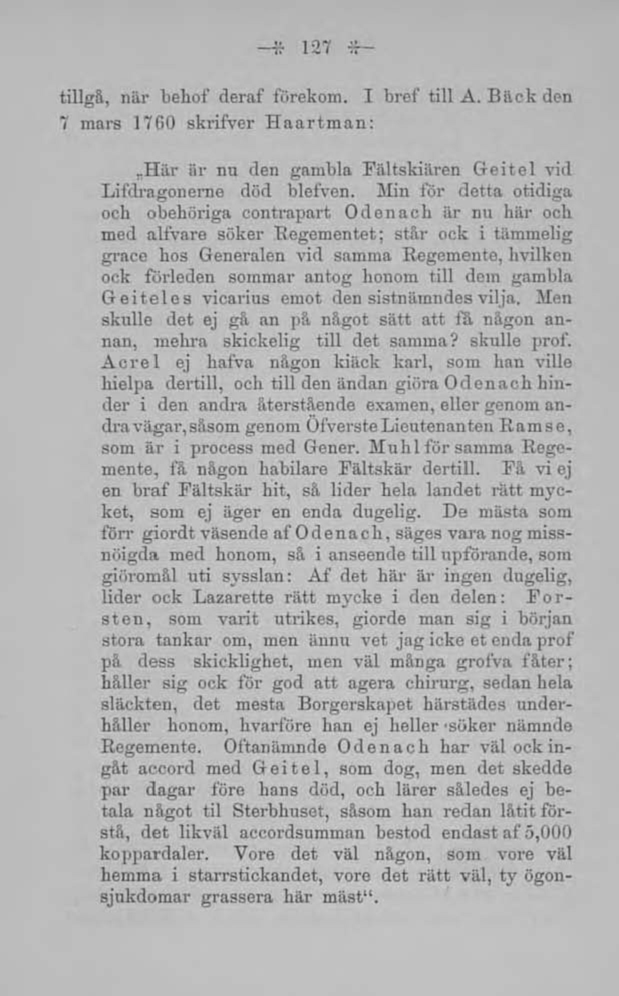 Regemente, fö någon habilare Fältskär dertill. Få vi ej