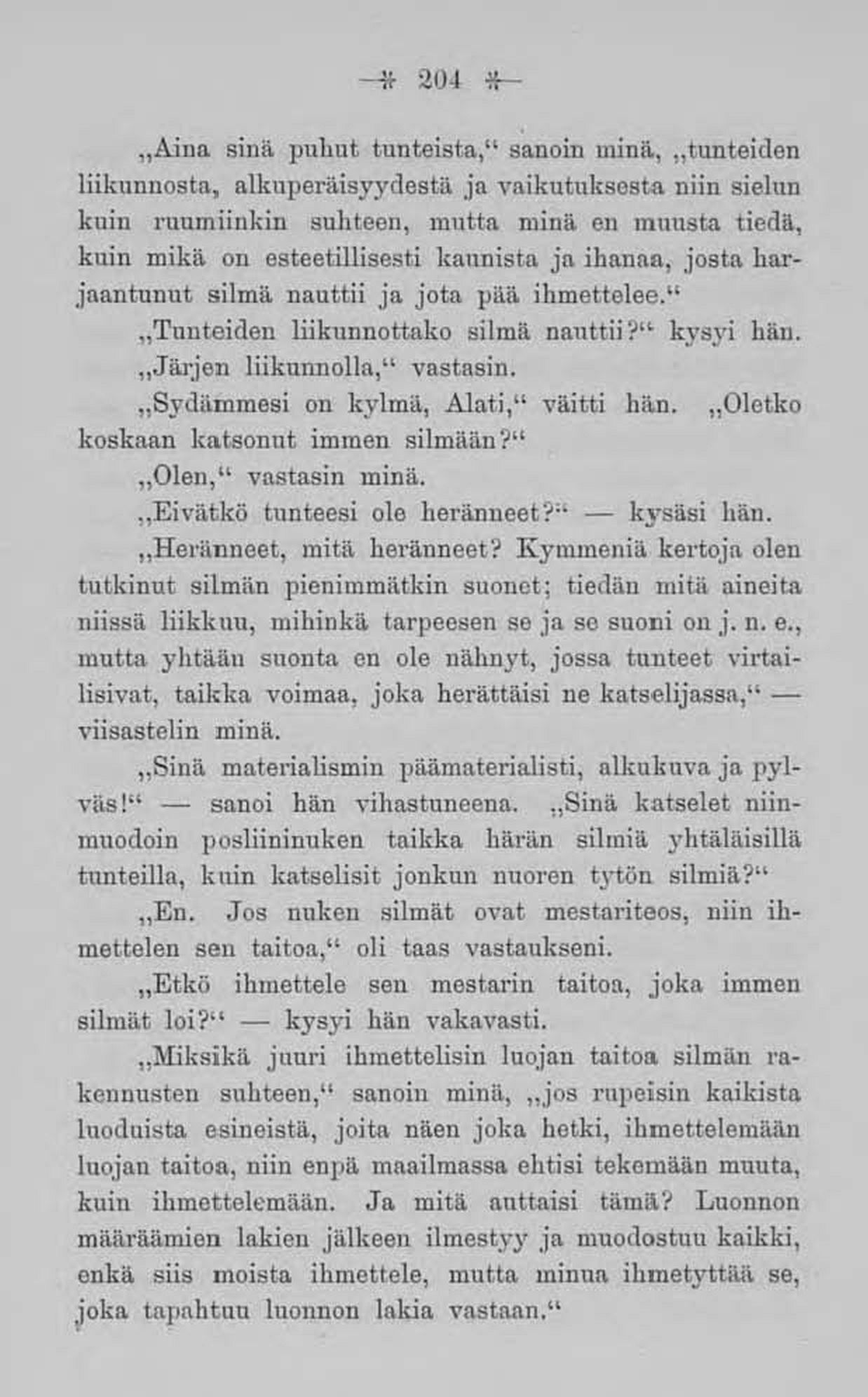 ,,Tunteiden liikunnottako silmä nauttii ?" kysyi hän.