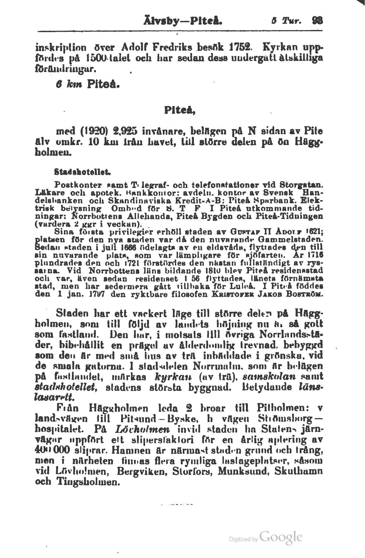 stad, men har sedermera gått tillhaka för Luleå. I Piteå föddes