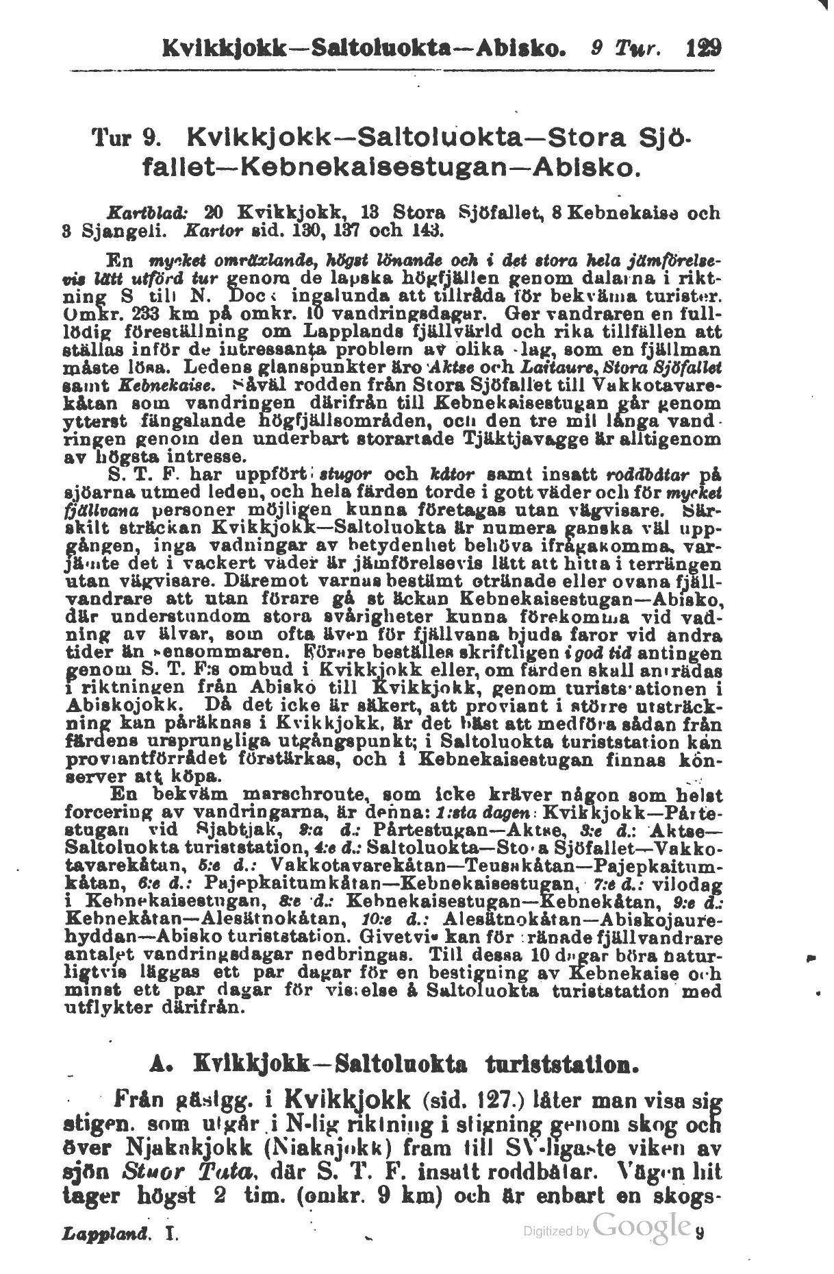 Kvikkjokk—Saltoluokta—Abisko. 9 Tur. 129