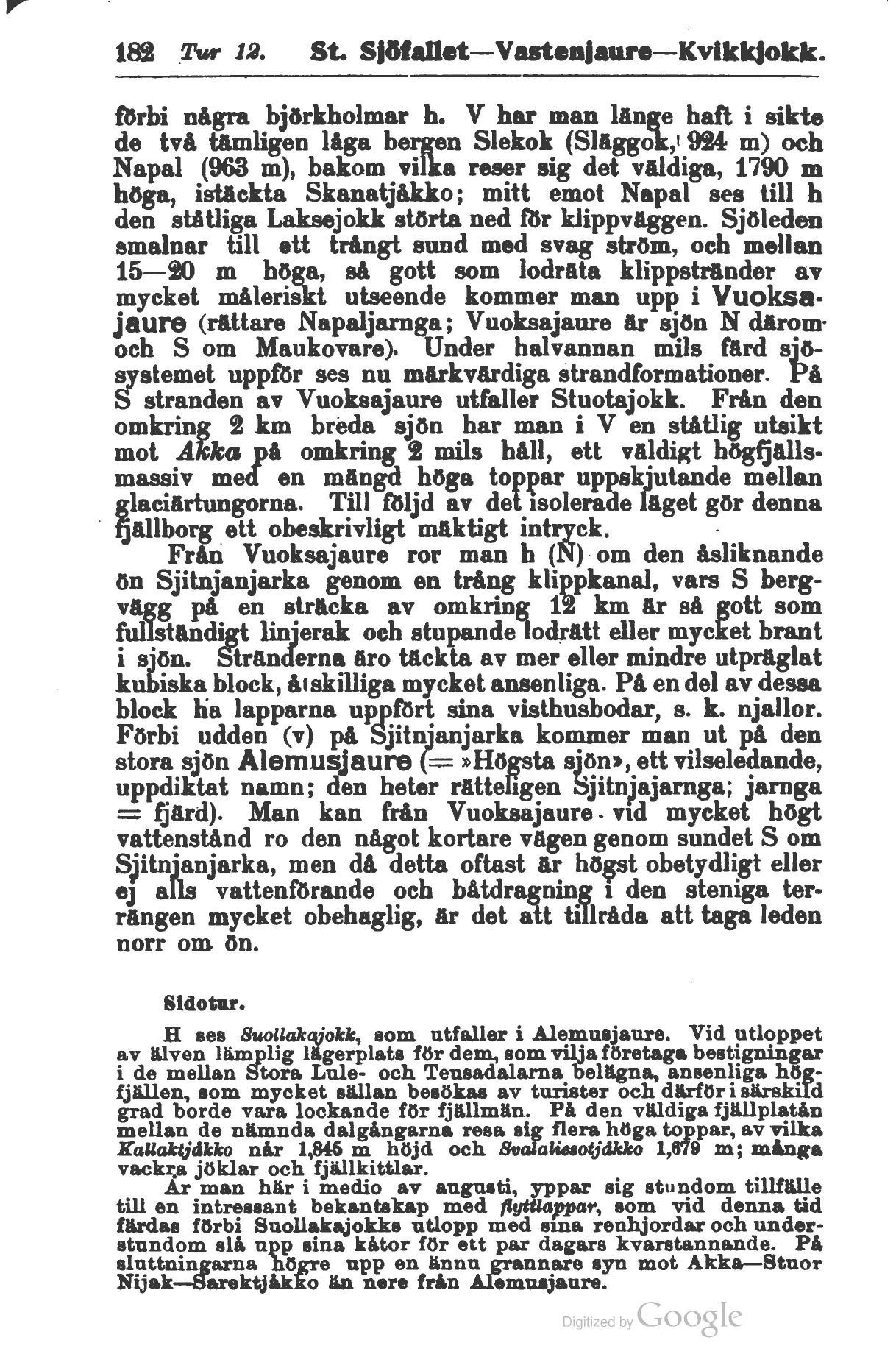182 Tur ia. St, SJSfallct—Vastenjaure—Kvikkjokk.