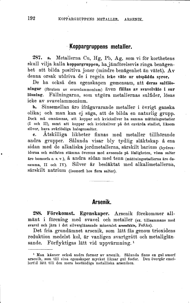 288. Förekomst. Egenskaper. Arsenik förekommer