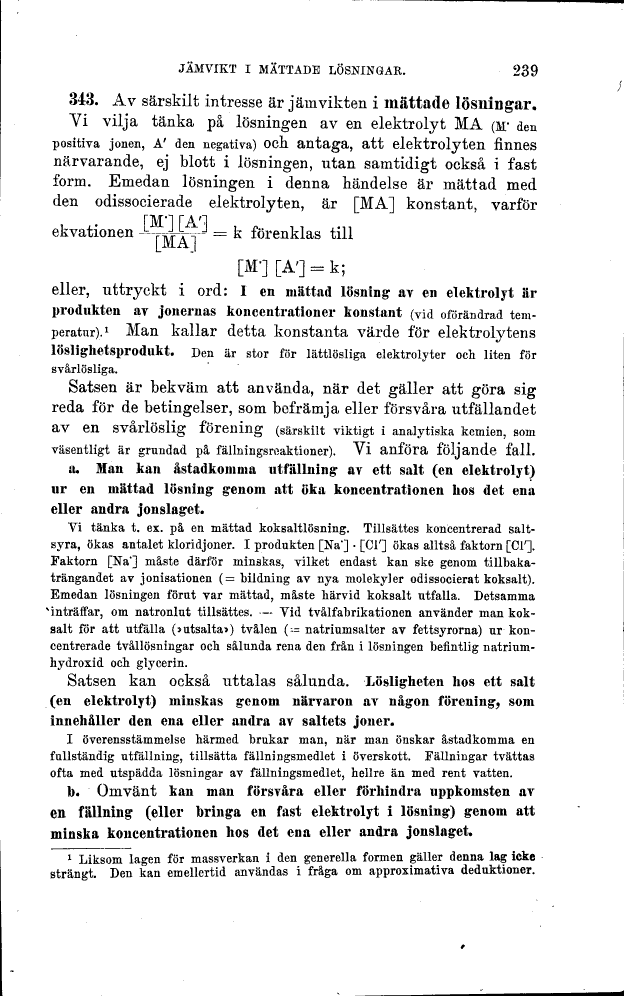 343. Av särskilt intresse är jämvikten i mättade lösningar,