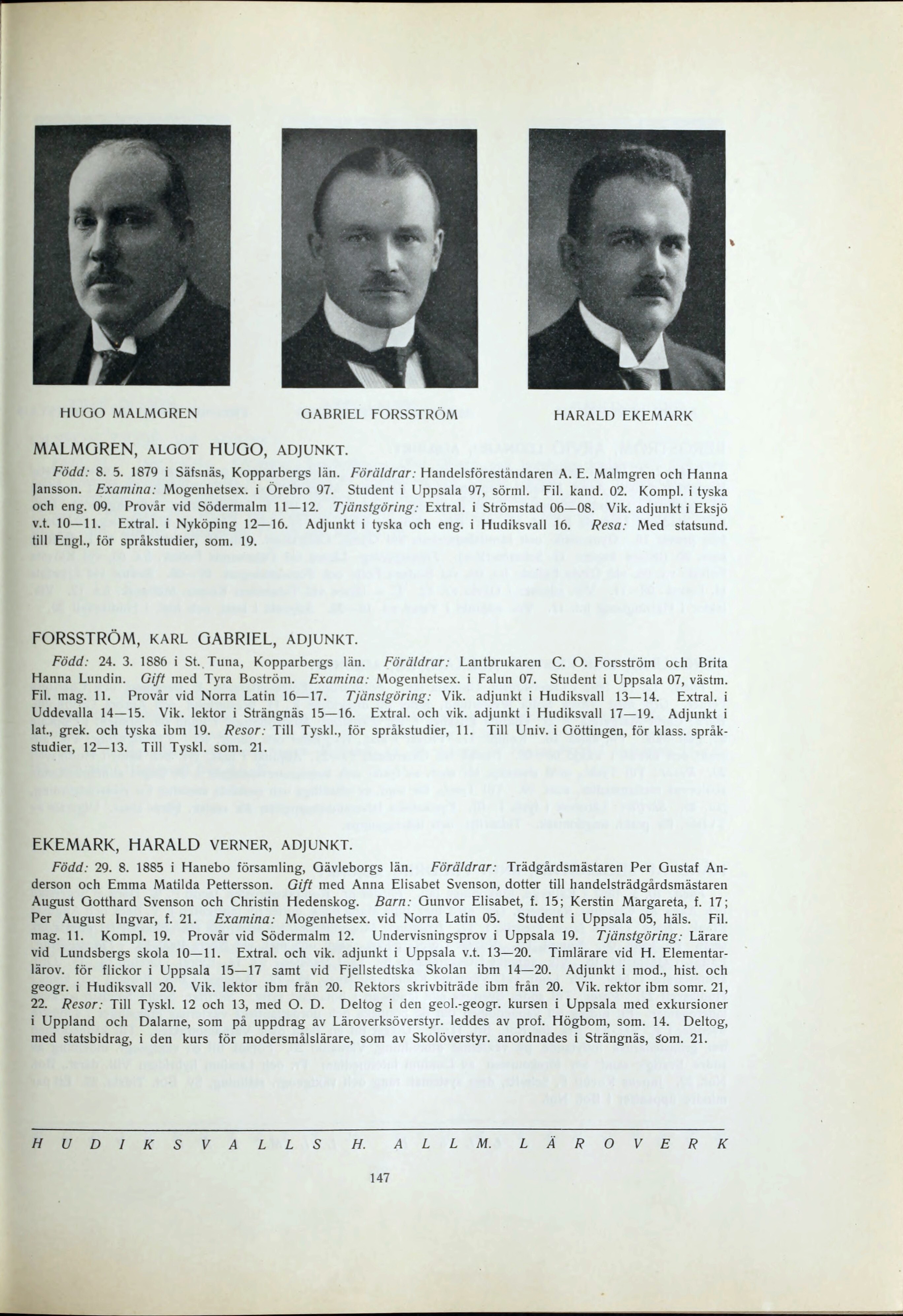 Full resolution (JPEG) - On this page / på denna sida - Lärarekåren - Hudiksvalls h. allm. läroverk - Ekemark, Harald - Forsström, Gabriel - Malmgren, Hugo