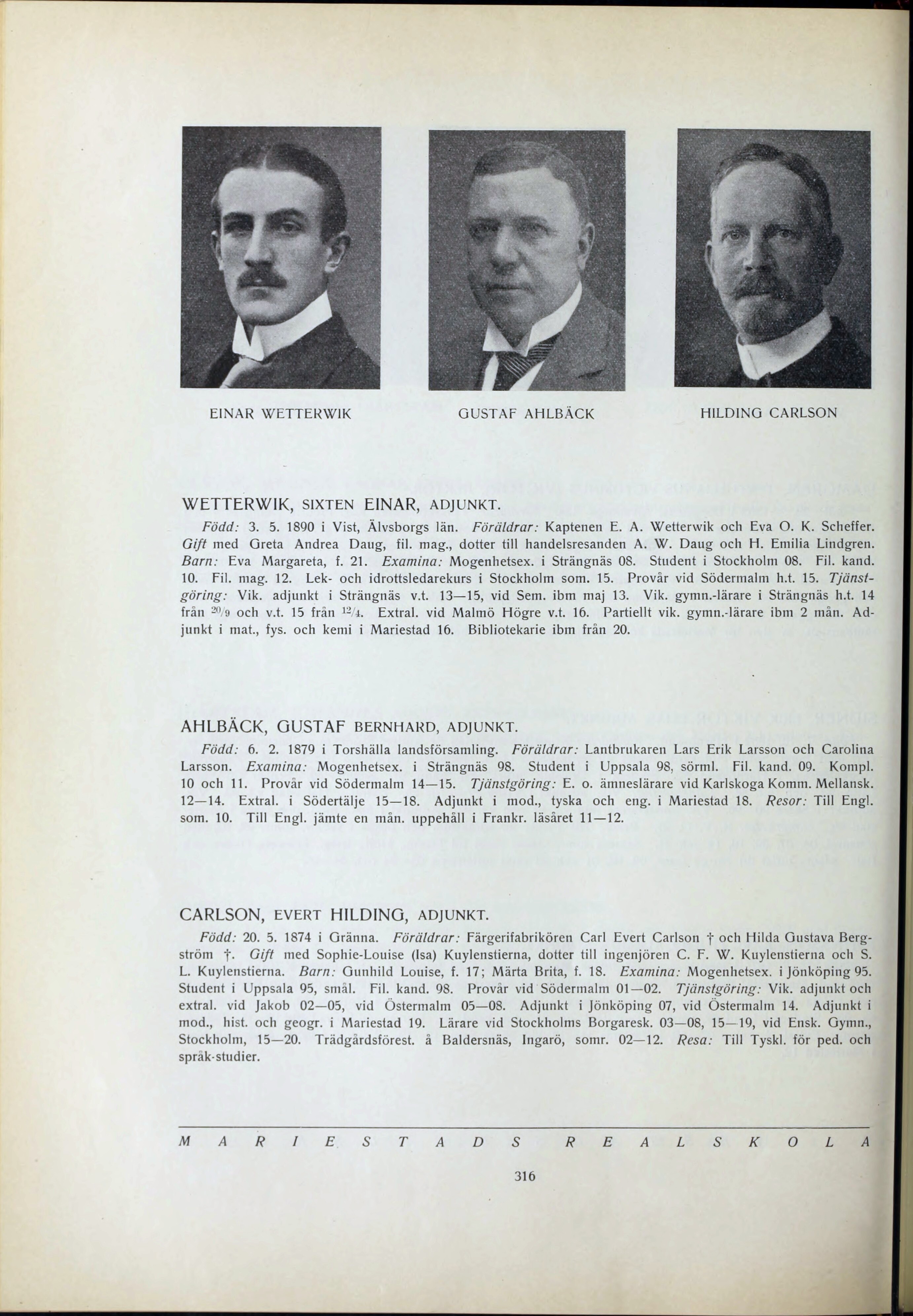 Full resolution (JPEG) - On this page / på denna sida - Lärarekåren - Mariestads realskola - Ahlbäck, Gustaf - Carlson, Hilding - Wetterwik, Einar