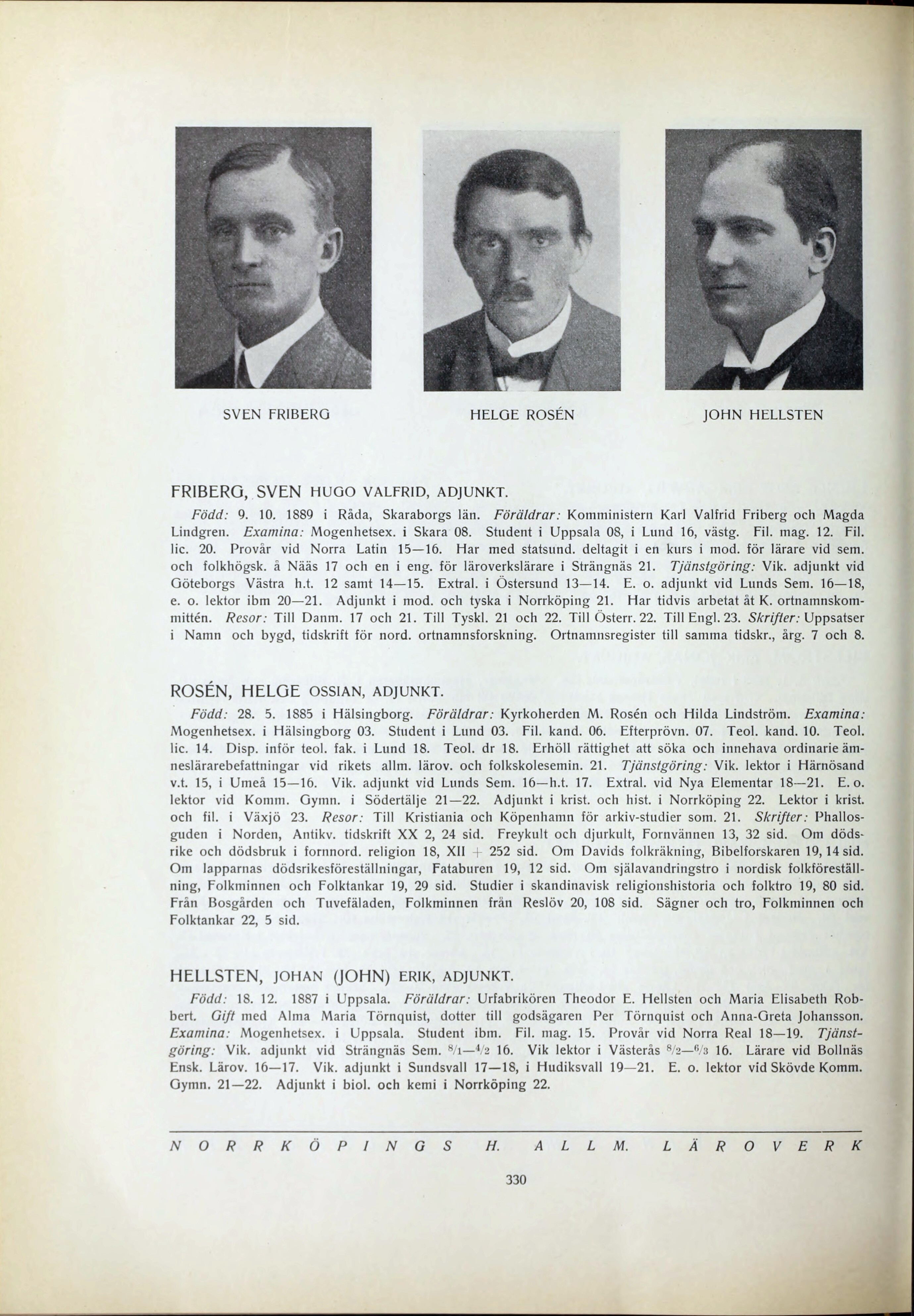 Full resolution (JPEG) - On this page / på denna sida - Lärarekåren - Norrköpings h. allm. läroverk - Friberg, Sven - Hellsten, John - Rosén, Helge