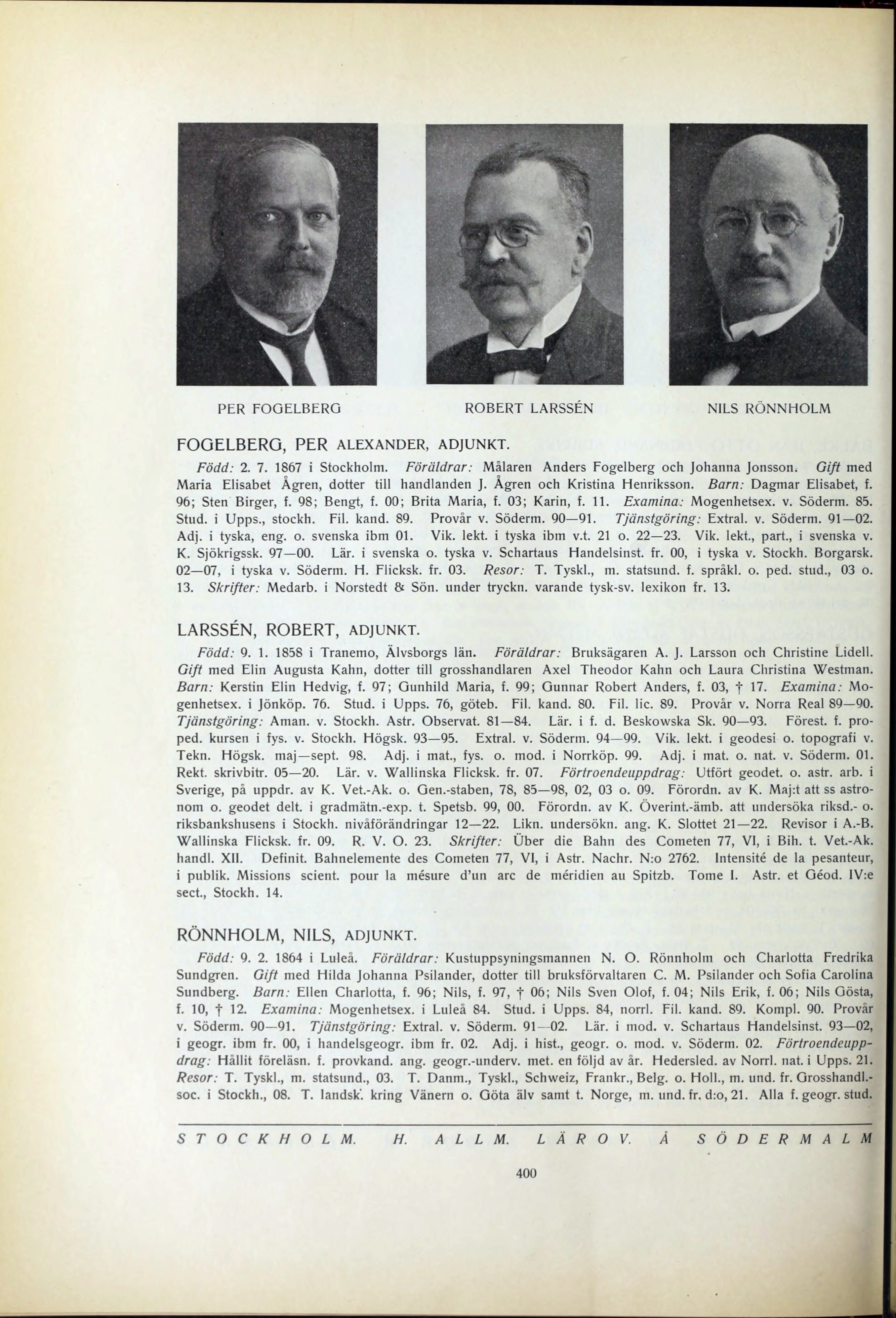 Full resolution (JPEG) - On this page / på denna sida - Lärarekåren - Stockholm. H. allm. läroverk å Södermalm - Fogelberg, Per - Larssén, Robert - Rönnholm, Nils