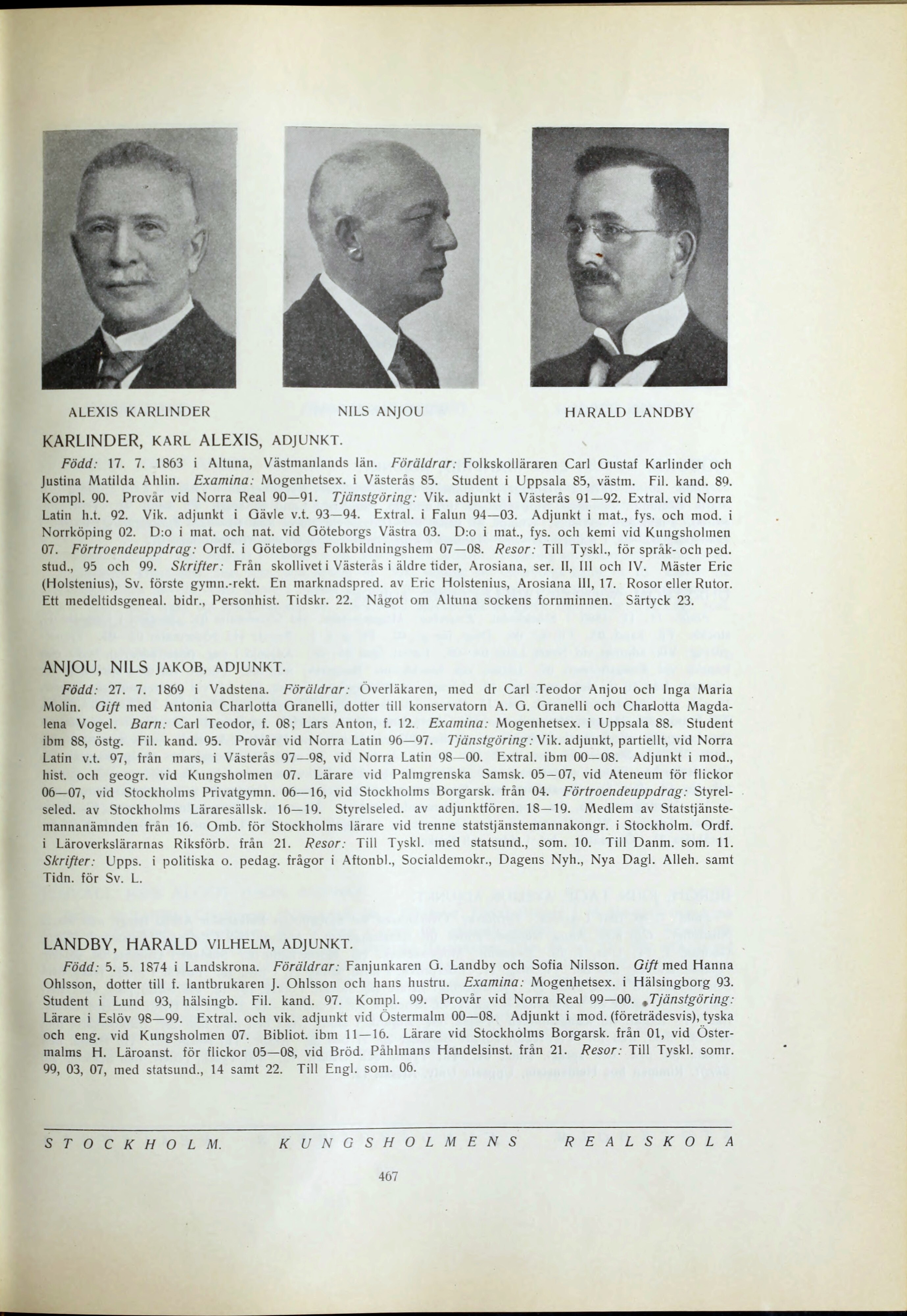 Full resolution (JPEG) - On this page / på denna sida - Lärarekåren - Stockholm. Kungsholmens realskola - Anjou, Nils - Karlinder, Alexis - Landby, Harald