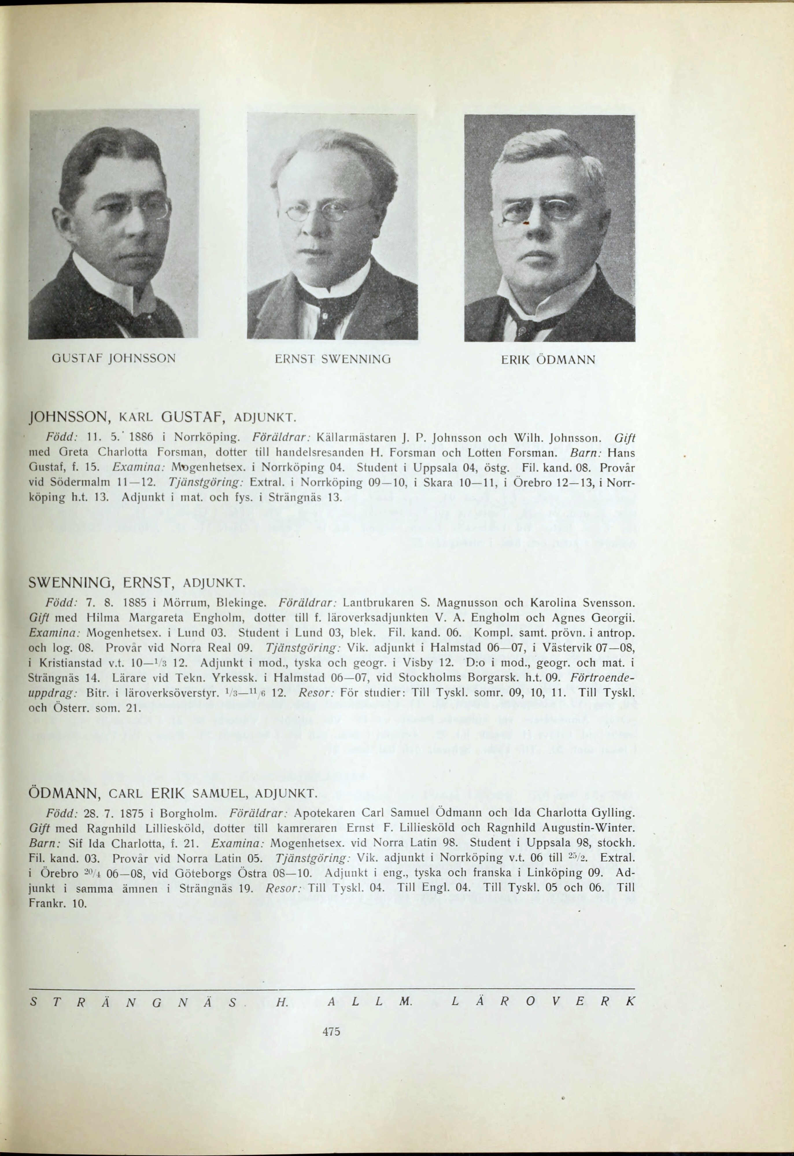Full resolution (JPEG) - On this page / på denna sida - Lärarekåren - Strängnäs h. allm. läroverk - Johnsson, Gustaf - Swenning, Ernst - Ödmann, Erik