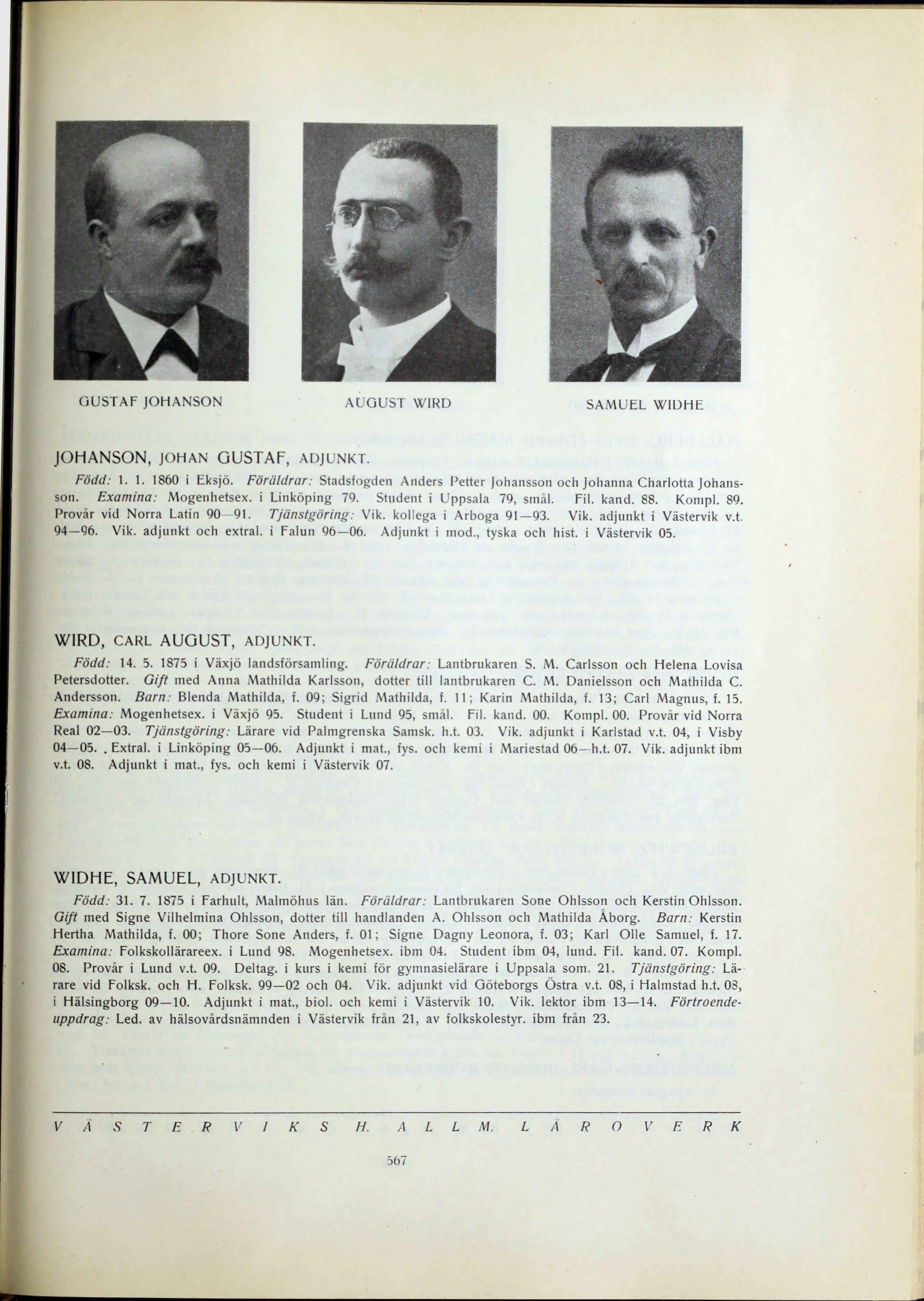 Full resolution (JPEG) - On this page / på denna sida - Lärarekåren - Västerviks h. allm. läroverk - Johanson, Gustaf - Widhe, Samuel - Wird, August