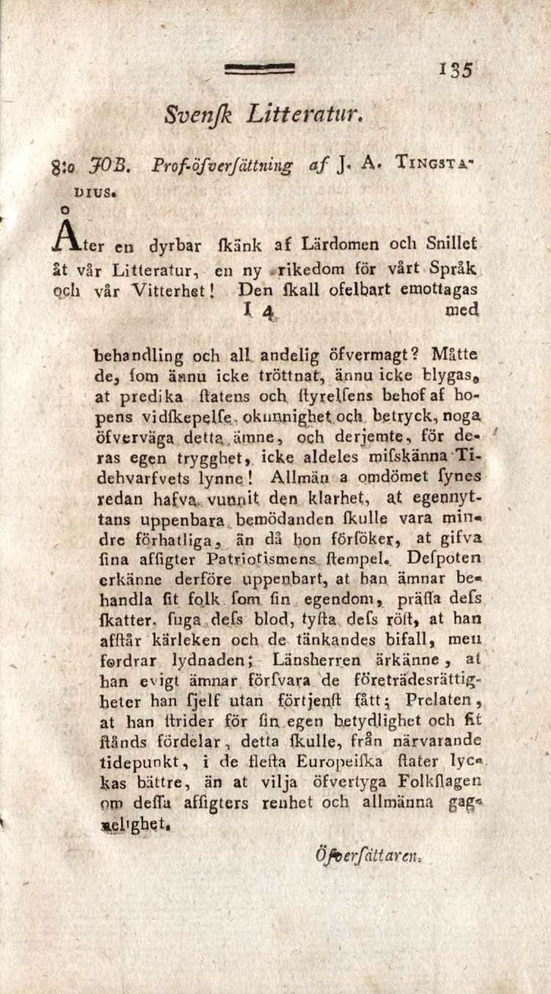 Full resolution (JPEG) - On this page / på denna sida - N:o 5 & 6 - 9. Svensk Litteratur - 8. Job. Prof-Öfversättning af J. A. Tingstadius