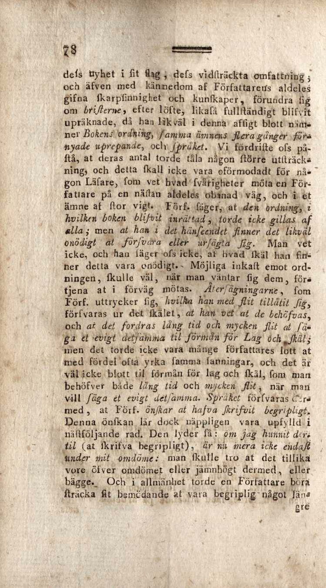 med, at Förf. önfkar at hafva fkrifou begripligt.