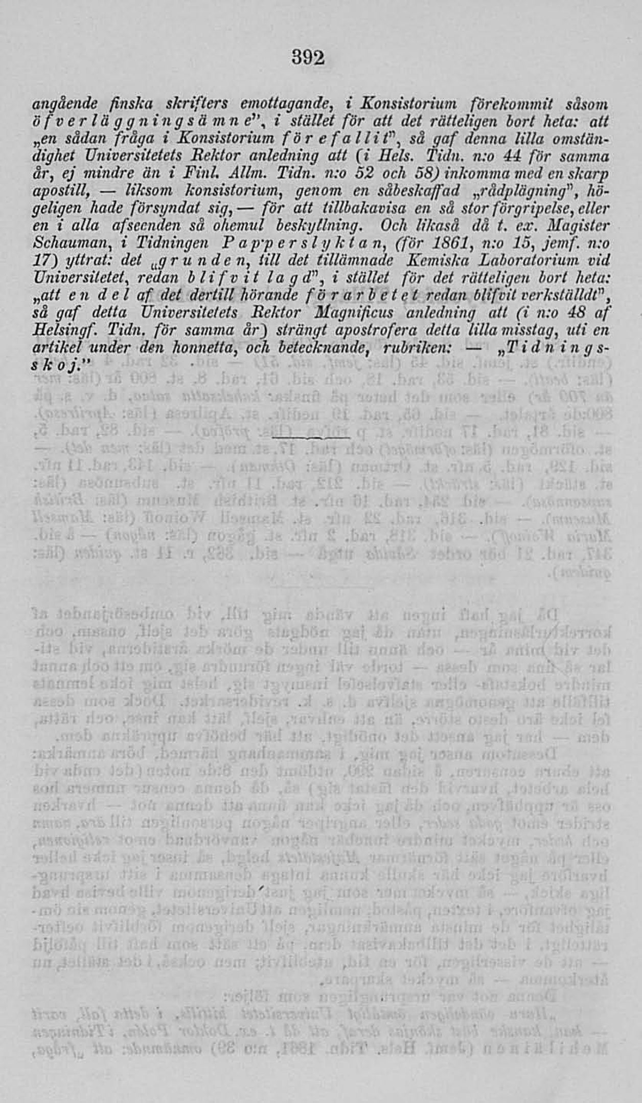 omständighet Universitetets Rektor anledning att (i Hels. Tidn. n:o 44 för samma