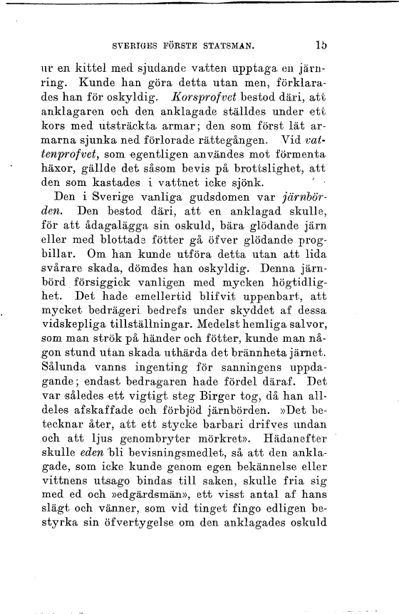 förklarades han för oskyldig. Korsprofvet bestod däri, att