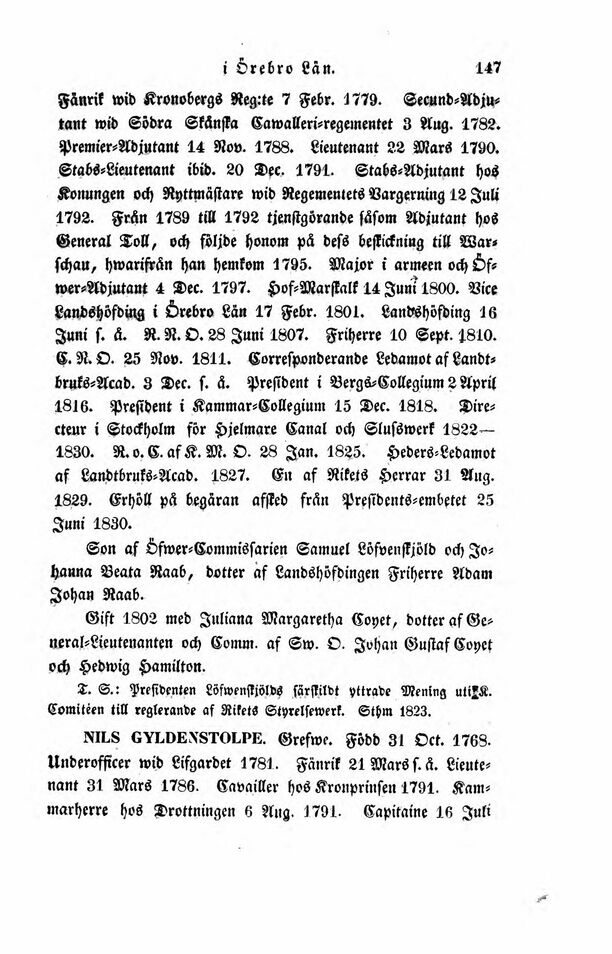 NILs GY!«DENST0LI)E. Grefwe. Född 31 Oct. 1768.